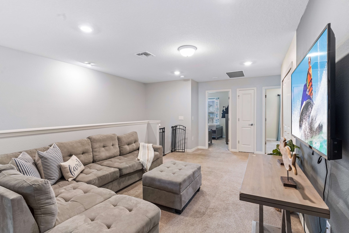 Escape to the loft area, equipped with a massive smart TV, offering an additional entertainment haven for cozy evenings and family movie nights.