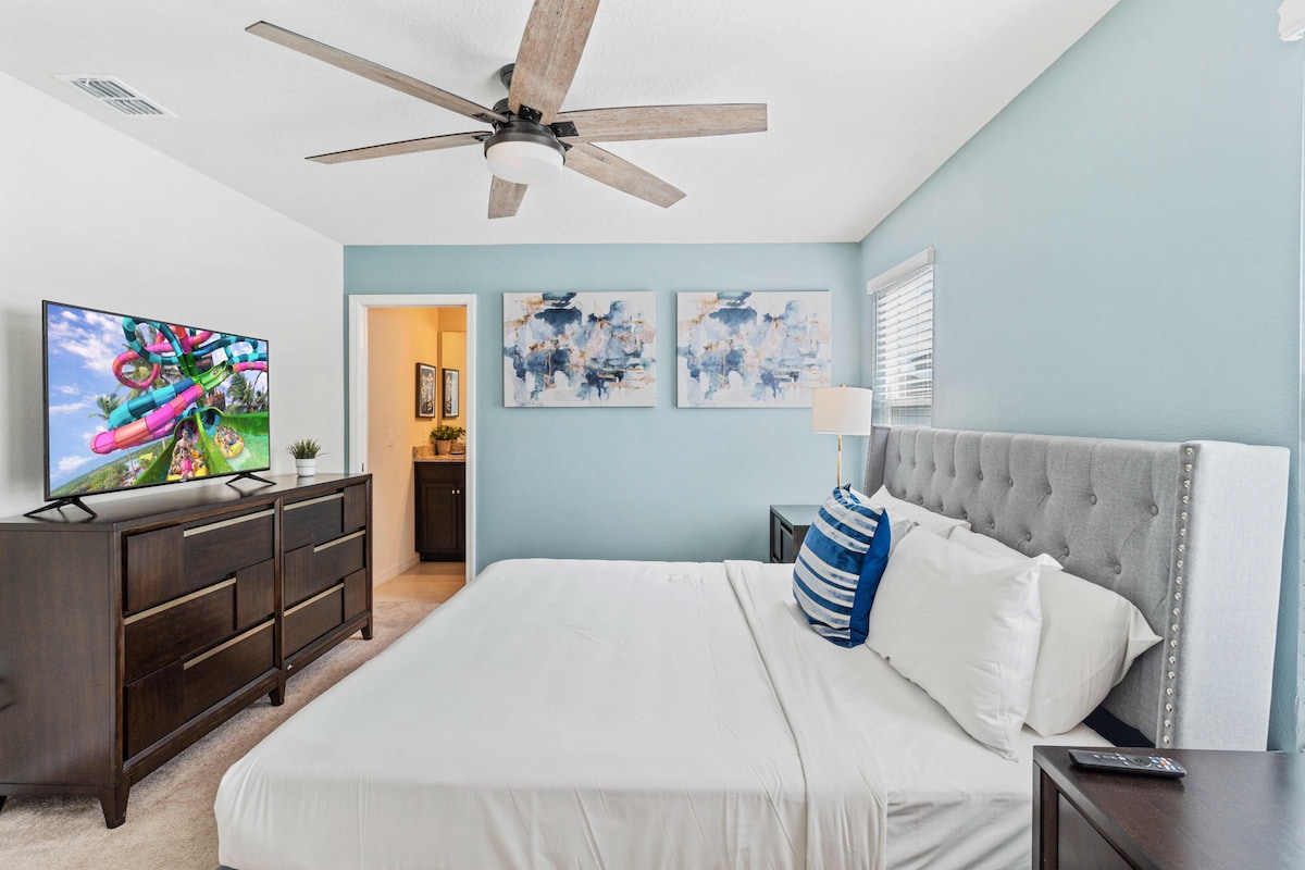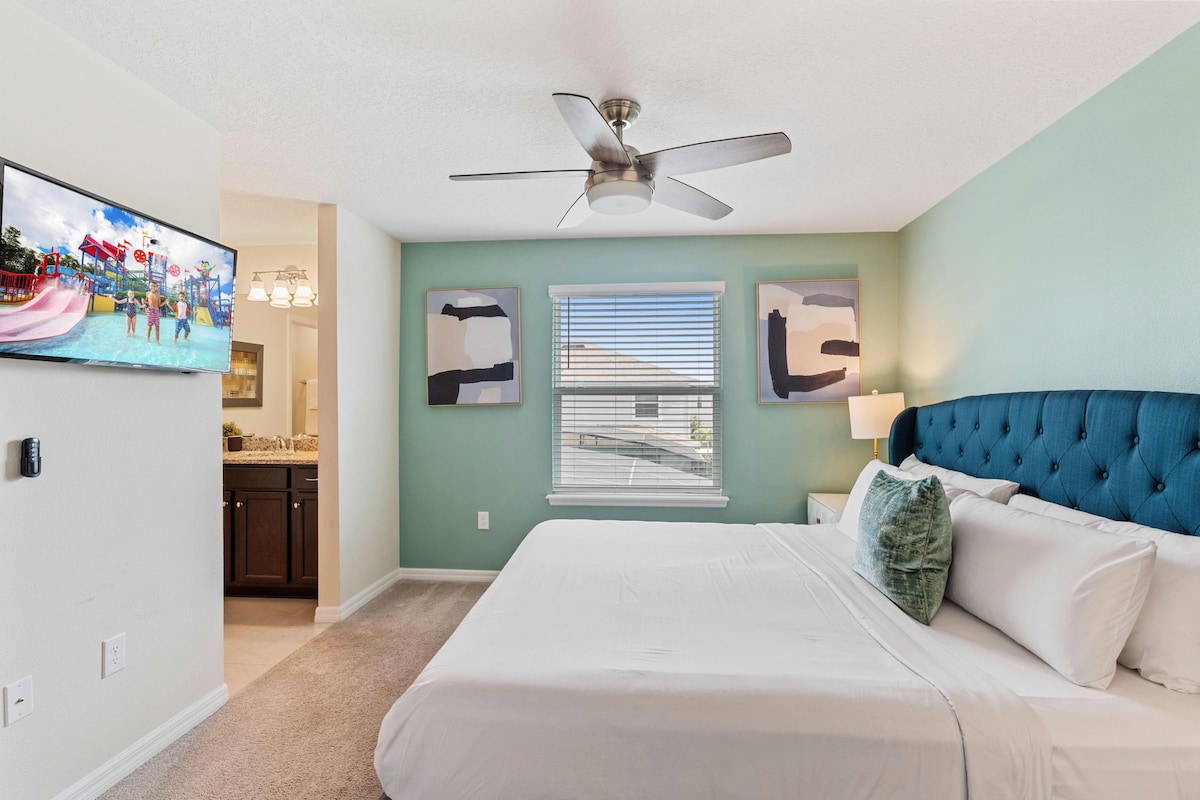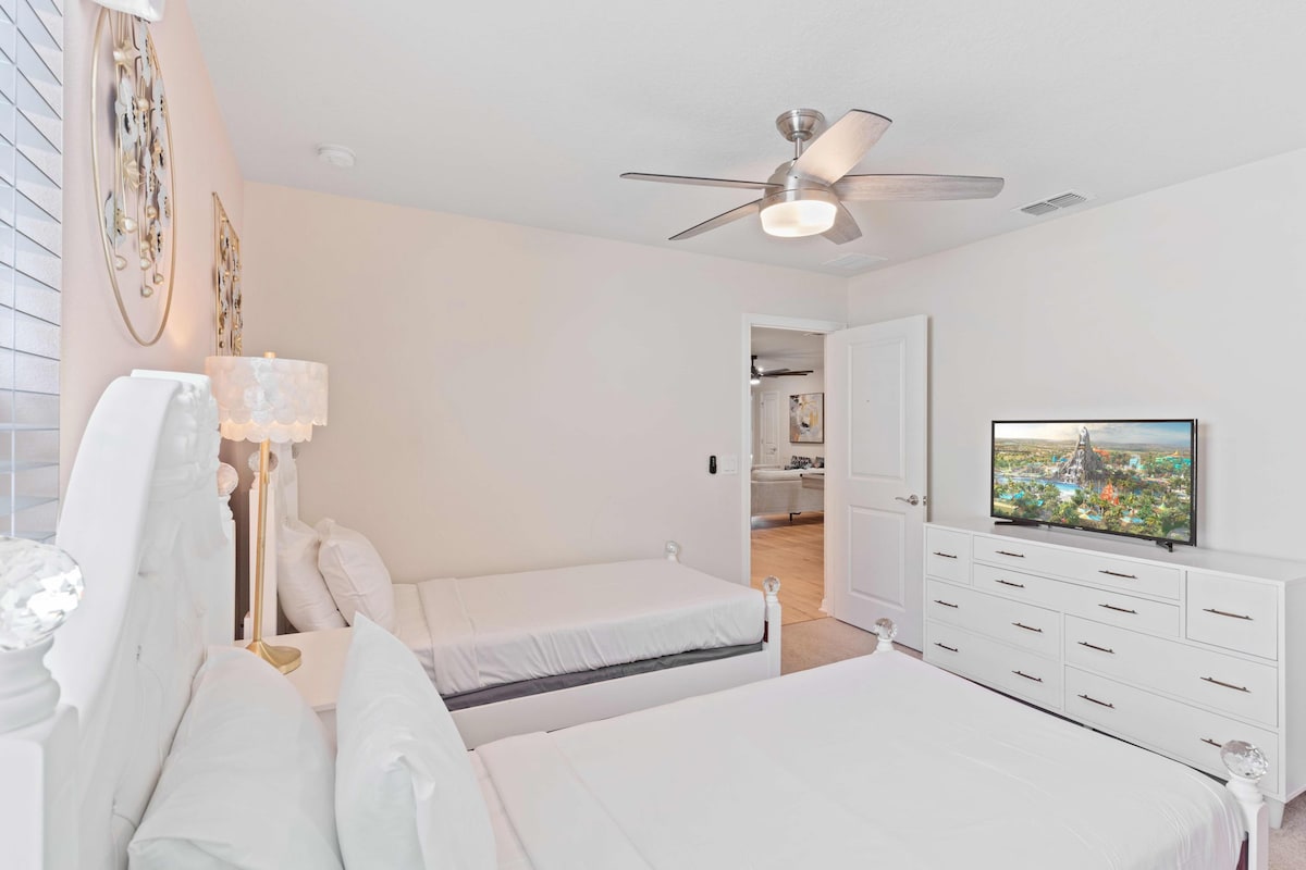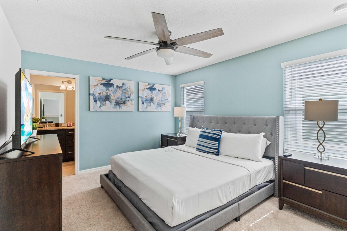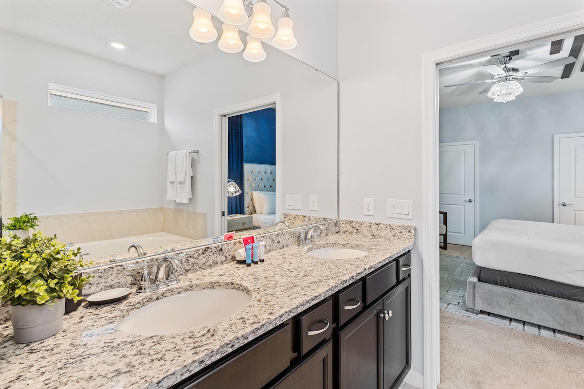 As guests, you’ll have full access to all the villa’s incredible amenities. Enjoy a workout in the modern fitness center, or spend hours of fun in the game room. The private pool and lazy river provide a refreshing escape, while the fully equipped kitchen and BBQ grill make mealtime a breeze. With high-speed WiFi, a dedicated workspace, and smart TVs, convenience is at your fingertips.