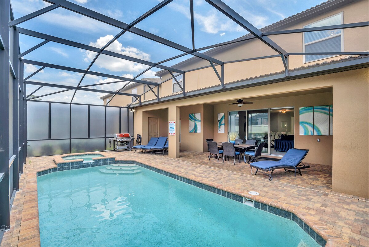 - Private pool, hot tub, & Patio with screened-in lanai.