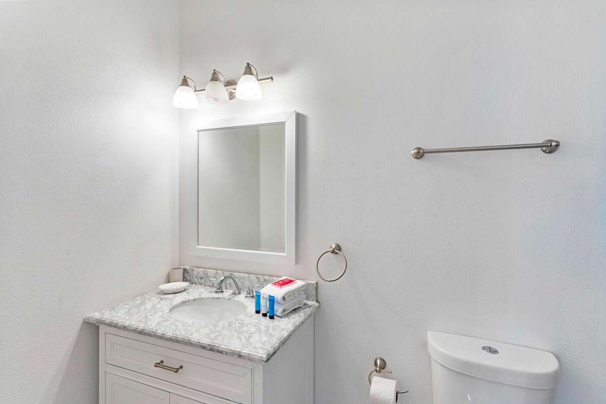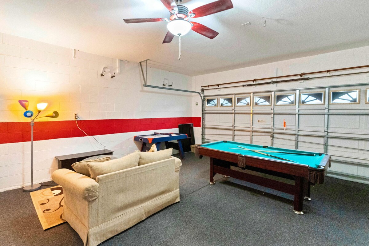 Entertainment options abound in this vacation home. The game room is a great place to unwind after a day of exploring the nearby attractions. It features a pool table, air hockey table, and a variety of other games to keep guests of all ages entertained. Whether you're challenging family members to a friendly game or enjoying a quiet evening in, the game room is a hub of activity and fun.