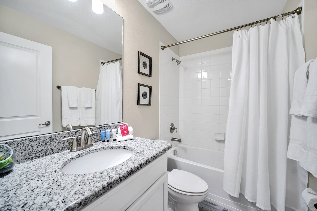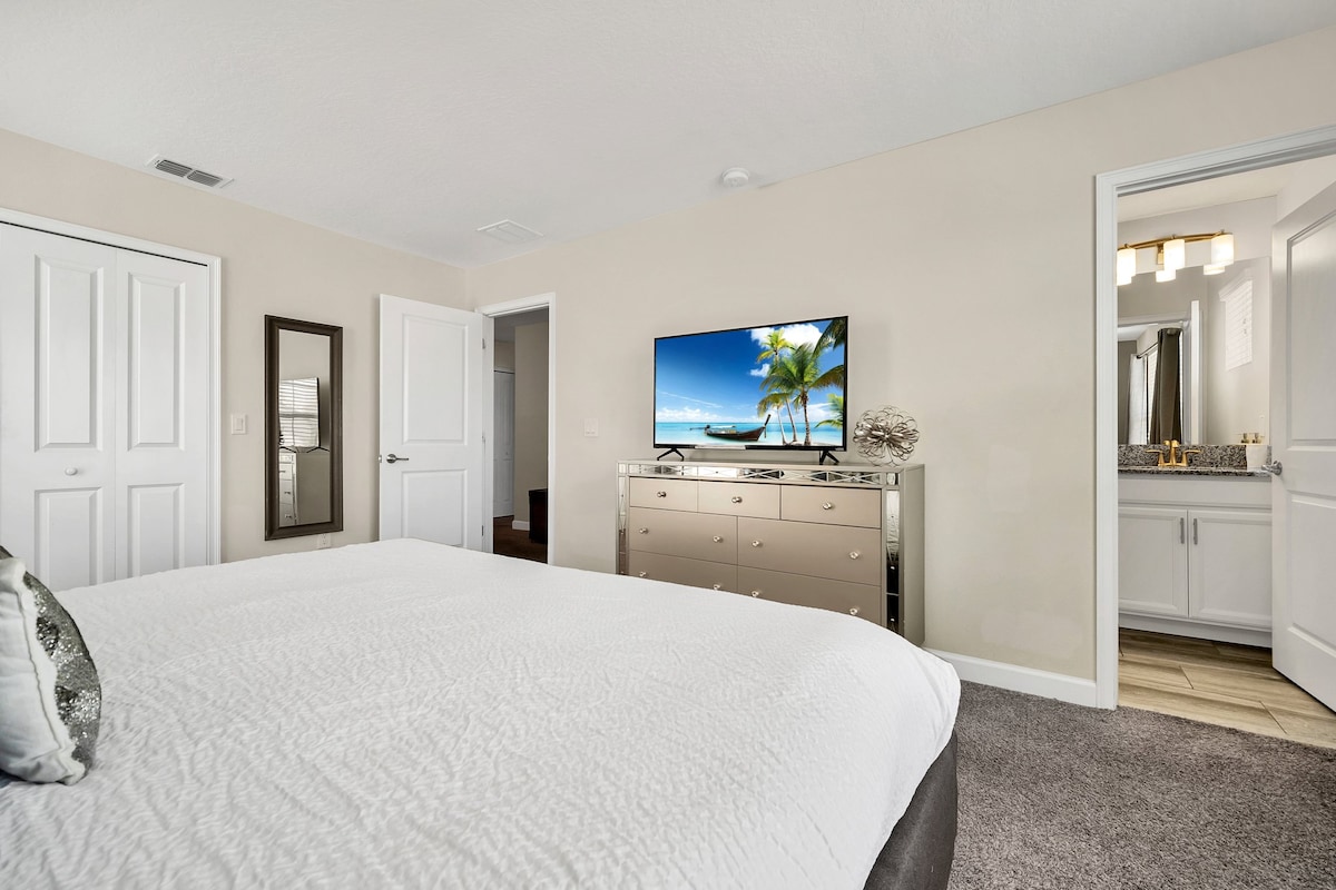 This high-end retreat offers resort access, allowing you to enjoy relaxation and adventure. Take a dip in the sparkling pools, float along the lazy river, or get energized in the on-site fitness center. Explore nearby attractions like Universal Studios, then retreat to your private oasis, complete with free parking on premises, free washer/dryer, and family-friendly amenities like a Pack ’n play/Travel crib and high chair for the little ones.