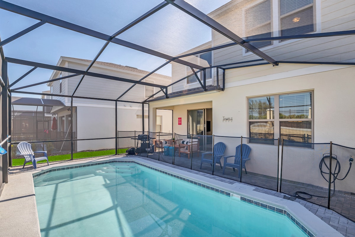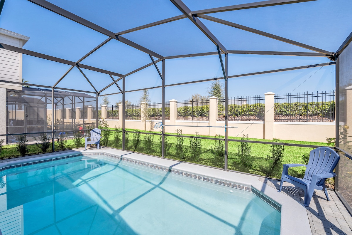 - The outdoor showcases an unforgettable screened-in lanai, a plethora of patio furniture, and an idyllic pool, perfect for an outdoor BBQ!