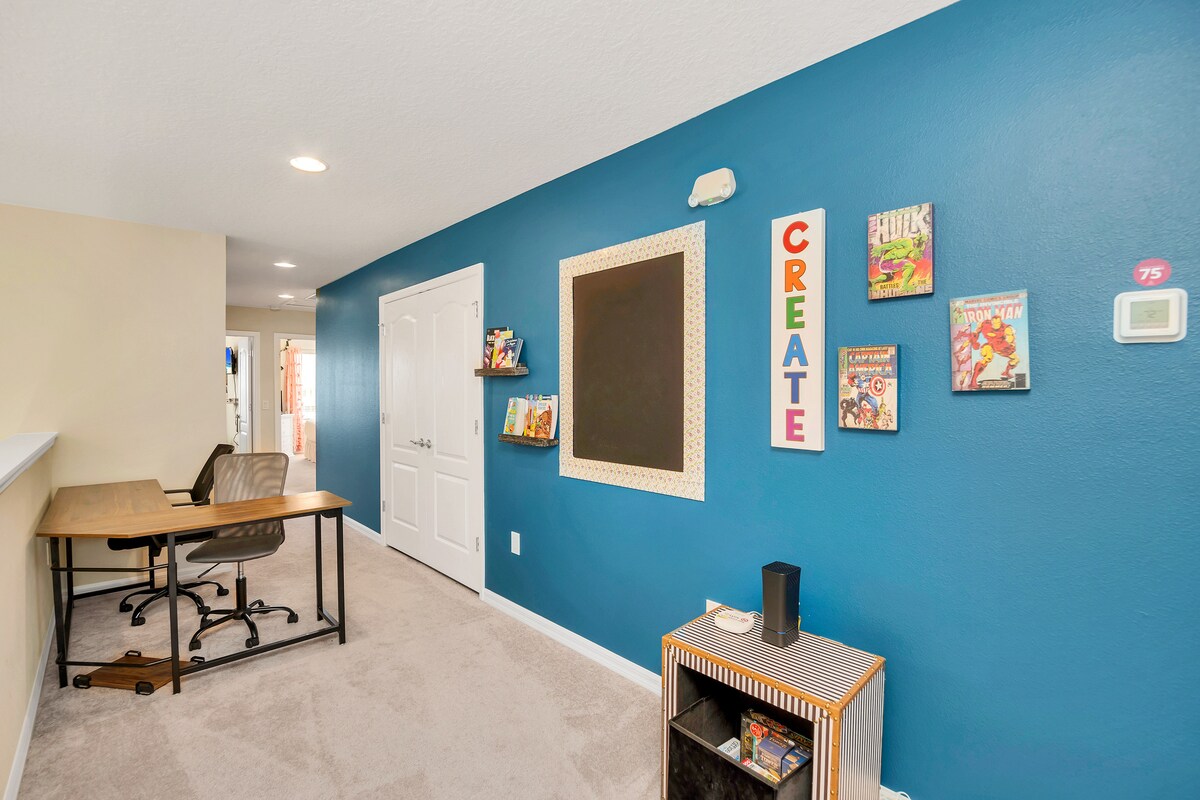 - A galactic room with space-themed decor and a spaceship-inspired accent wall is ideal for sci-fi lovers and young explorers.
