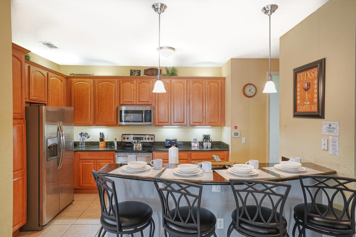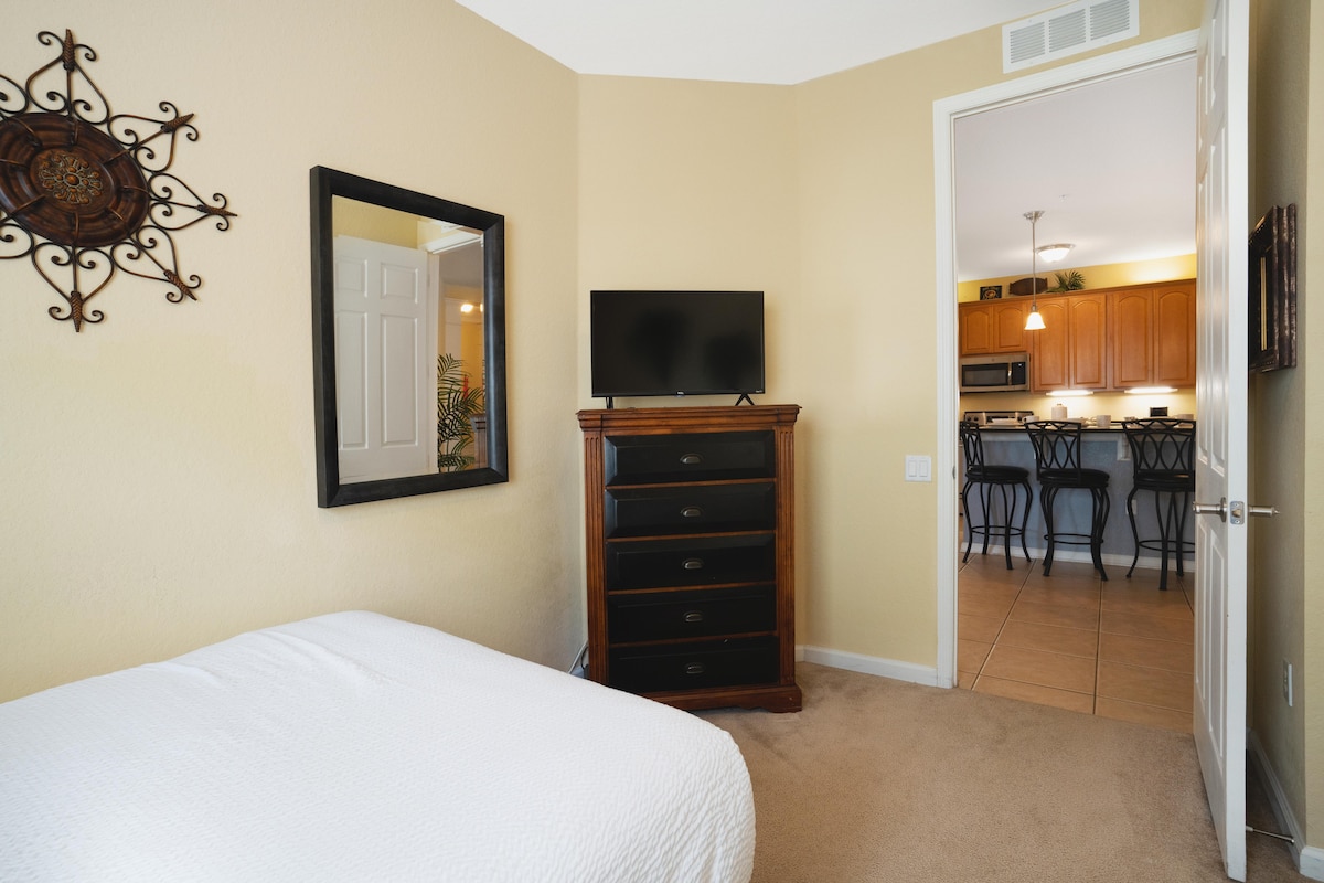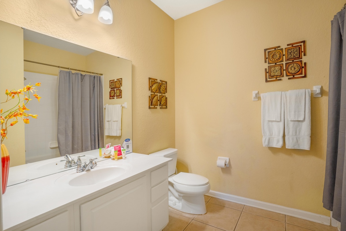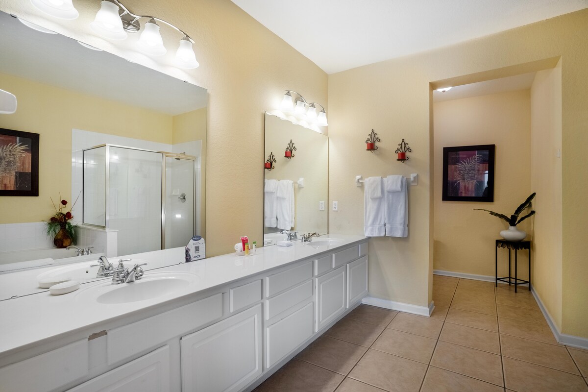 Each of the three bedrooms is designed with your comfort in mind, offering comfortable beds and plenty of storage space. With a mix of king, queen, and twin beds, there’s flexibility to accommodate groups of all sizes. Soft linens and plush pillows ensure a peaceful night’s sleep after a day of Orlando adventures.