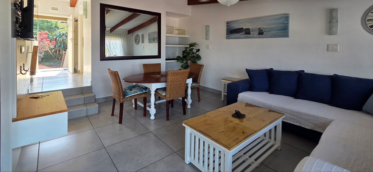 UNIT 35 is a first floor (top floor) apartment with the most stunning sea views. It's prime position at the back of the Estate allows for privacy and peace, but close enough to the resort facilities and common areas when required.The unit has a private entrance with it's own balcony and braai area. The perfect position of the apartment gives breathtaking sea views from the balcony, living room and kitchen.