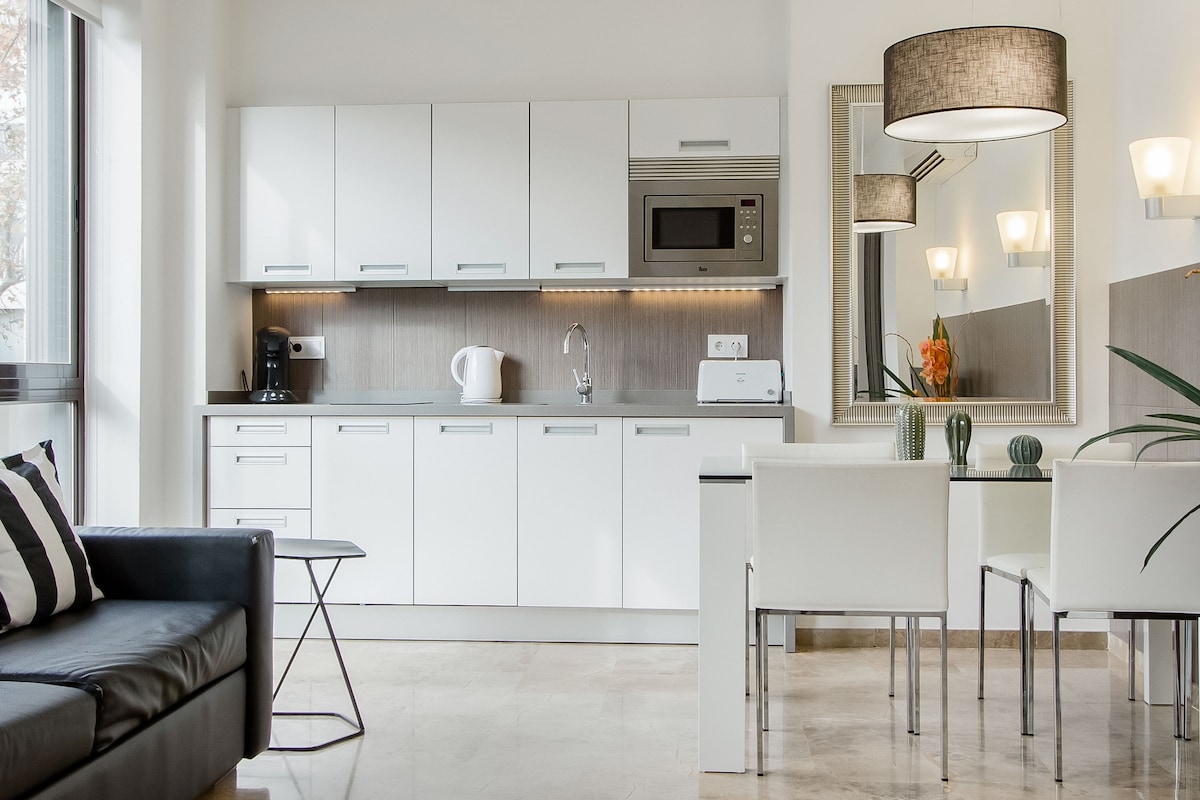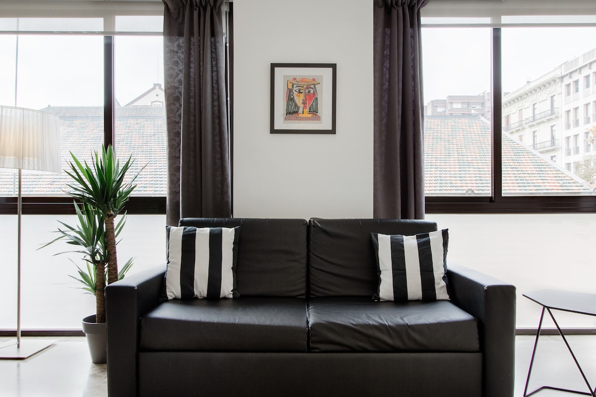 Picasso Suites was absolutely what we had wanted for our stay in Barcelona. The centrally-located apartment was immaculate, decorated in modern tones of white, black and gray with a kitchenette containing dishes and appliances. There was even a vase so we could buy flowers from the charming market next door. The roof-top terrace is an added bonus with a view of Eixample and environs. Can60 is the restaurant on ground level which features a daily light breakfast served by a friendly staff (Laura being our favorite.) Karolina, host Damian Harris' on-site point person, keeps "office hours" every morning in the restaurant answering questions on the apartment or on any number of tourist queries. She is a veritable Barcelona concierge. We availed ourselves of Damian's recommended taxi driver, Andres for our trip to the airport and would ask to be picked up by him next time as well. The six level building has an elevator, staircase and a sweetheart of a manager who will check your bags before check-in or after check-out. There is wi-fi in both the apartment and the restaurant. This home away from home gets our highest travel rating and provided the perfect hub from which to discover Barcelona by foot, bus or metro.