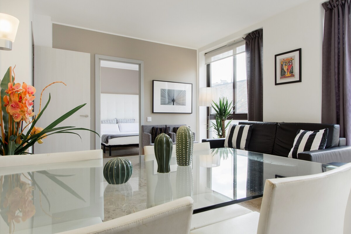 The suite is located in a very pleasant neighborhood, near shopping, markets, etc., and not far from all the major tourist sites. It is clean, roomy, modern, and looks just the the photos. Breakfast in the restaurant on the ground floor was the perfect way to start the day. We were very comfortable and definitely enjoyed our stay. Damien and his assistant, Dina, were very helpful and easy to deal with. The apartment was well worth the money, and we would definitley stay there again. Strongly recommended for a small family or a couple.