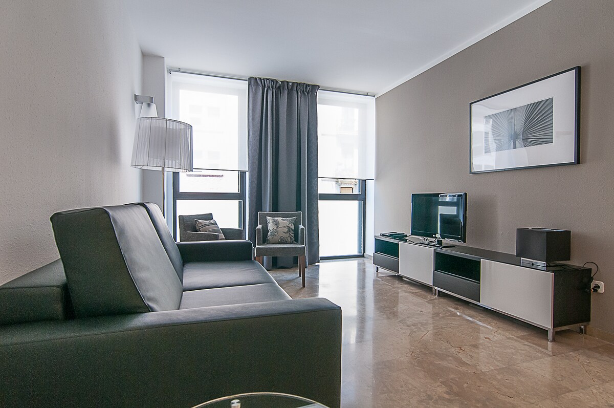 Check out the view - marble floors and bathroom, modern furniture and overlooking the La Concepción Market that was built in 1888 in the centre of Barcelona's Eixample District, between the streets of Aragó, València, Bruc and Girona.