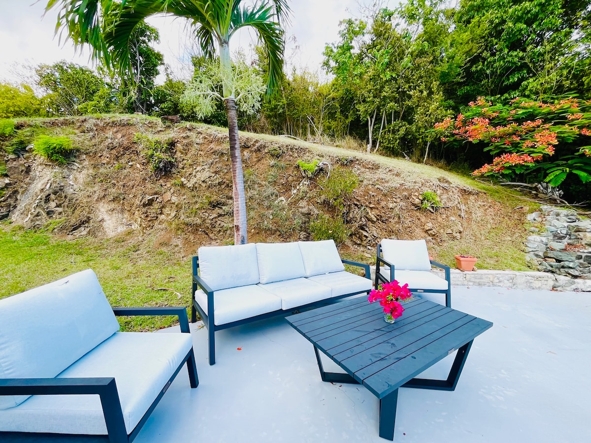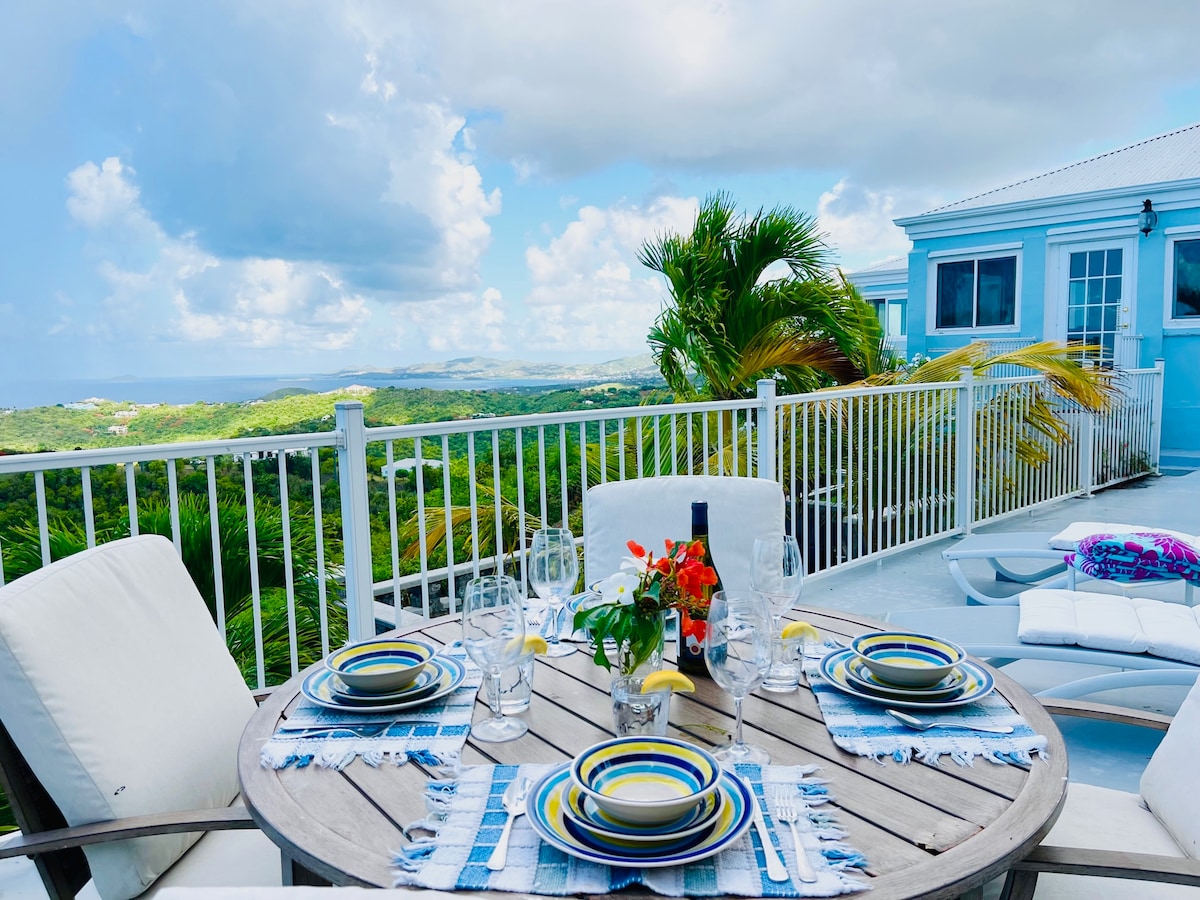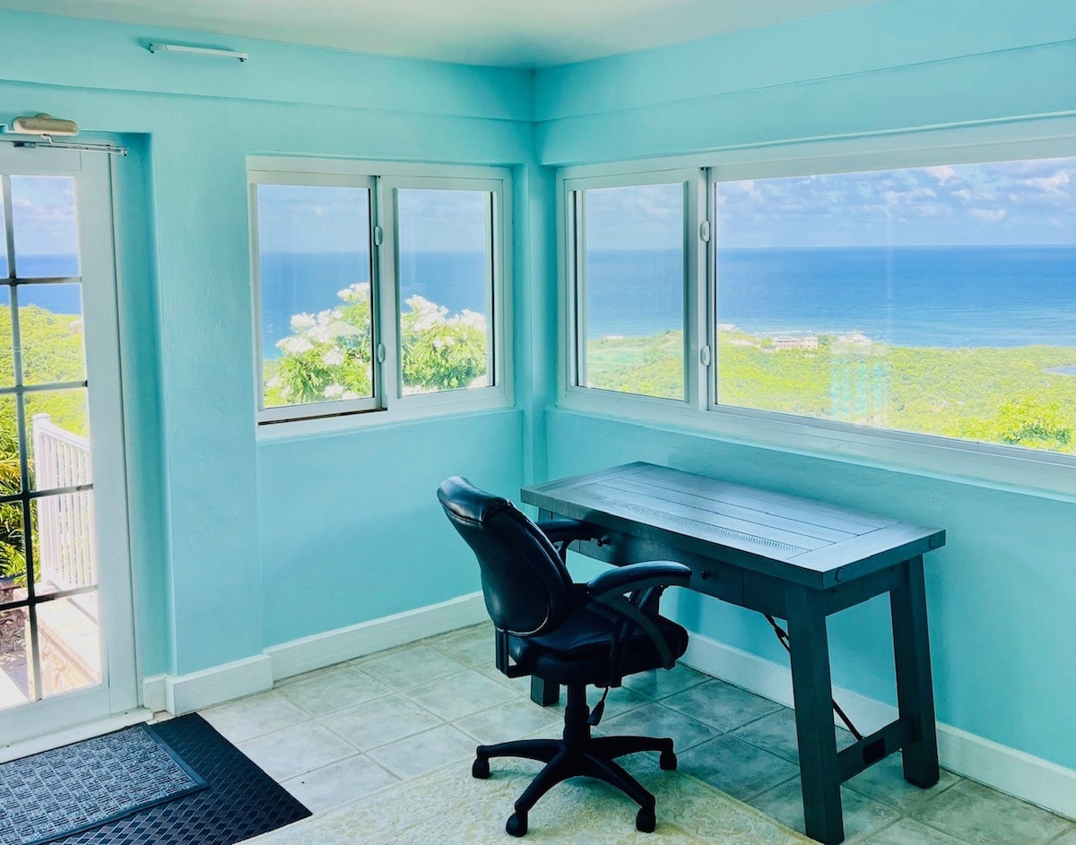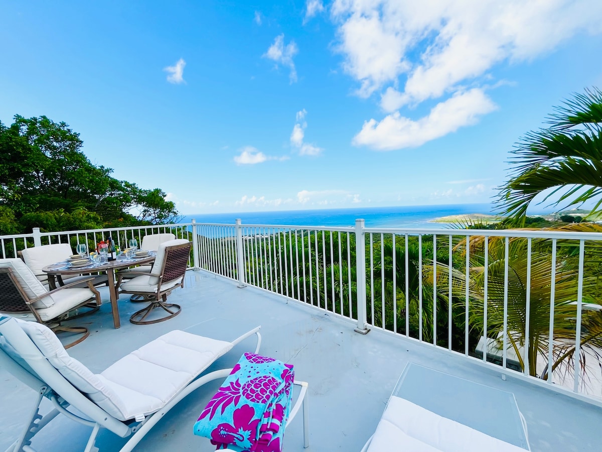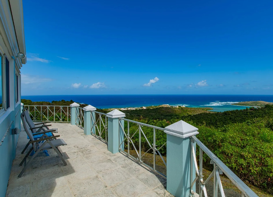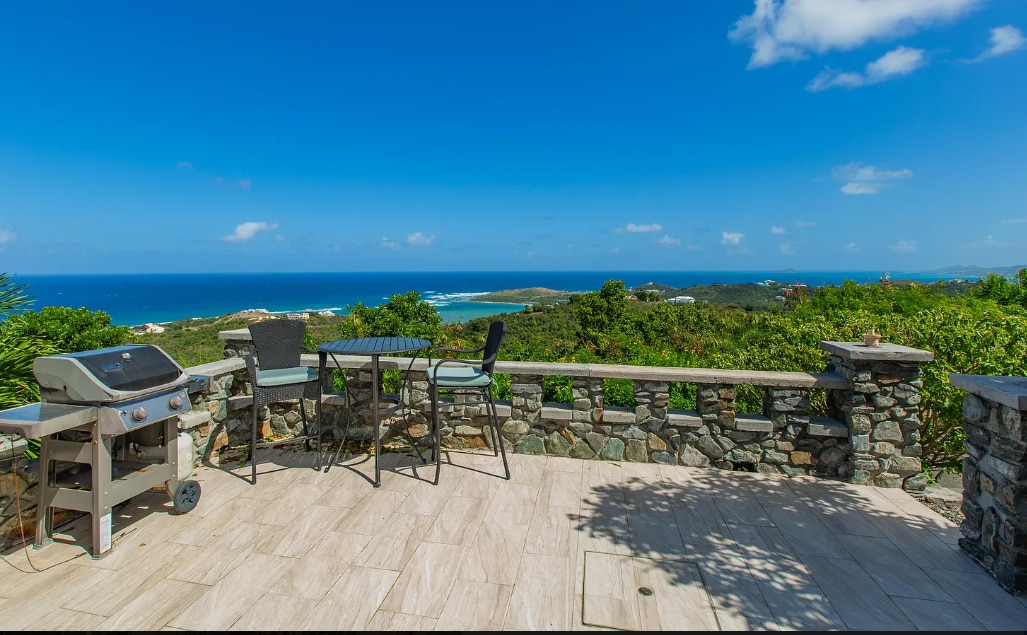 Welcome to Caribbean Camelot—your hilltop haven where island charm meets regal elegance. Perched high above the sea, this castle-inspired 3-bedroom, 2-bath villa offers sweeping panoramic views of Buck Island, the turquoise Caribbean, and the coastline stretching east toward Christiansted.Designed for both luxury and relaxation, Caribbean Camelot features a private pool, open living spaces, and beautifully appointed bedroom suites—each with ceiling fans, split A/C units, and thoughtful touches for your ultimate comfort. The primary suite even offers direct pool access, perfect for a refreshing morning dip or a starlit swim.