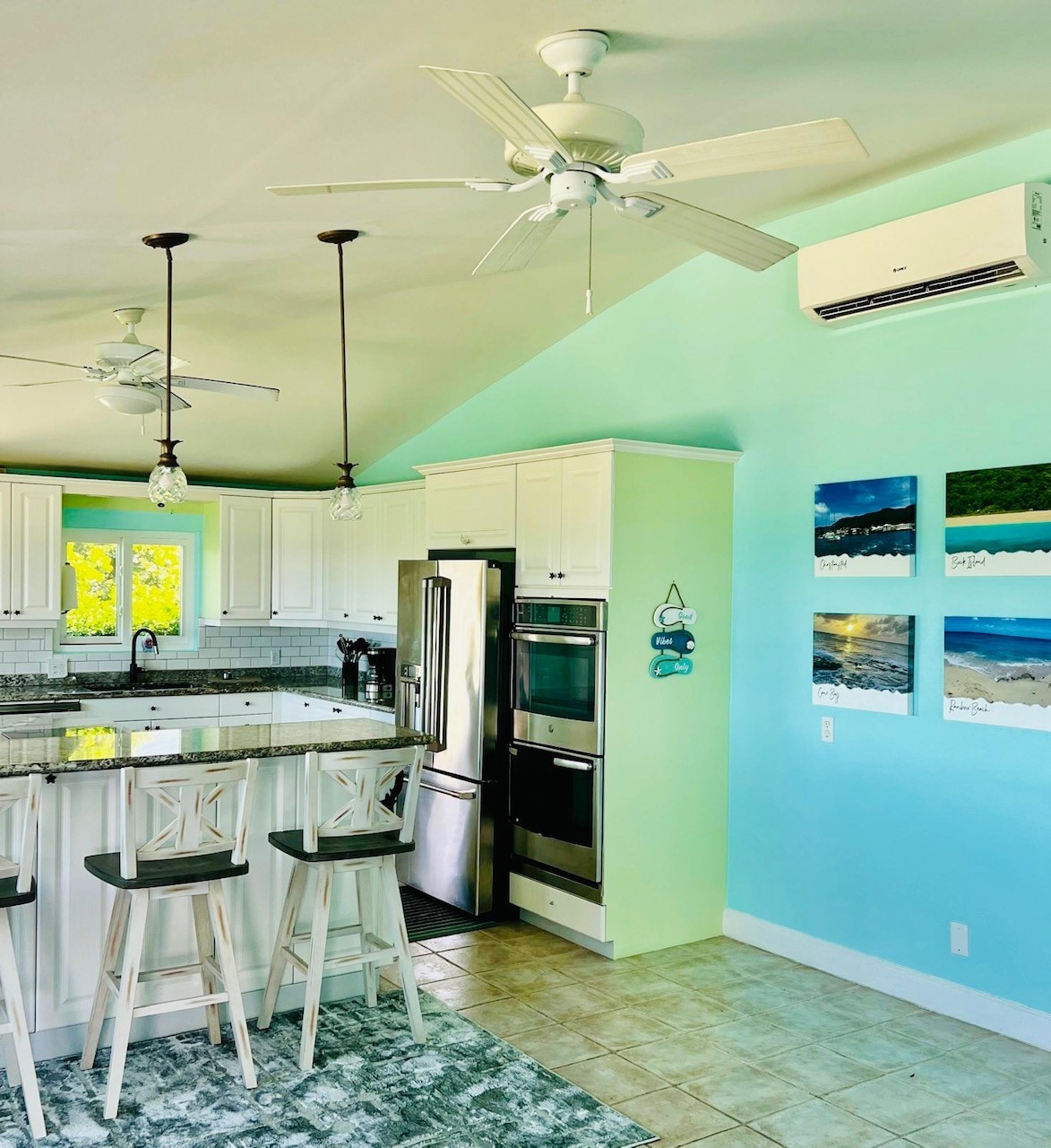 Designed for both luxury and relaxation, Caribbean Camelot features a private pool, open living spaces, and beautifully appointed bedroom suites—each with ceiling fans, split A/C units, and thoughtful touches for your ultimate comfort. The primary suite even offers direct pool access, perfect for a refreshing morning dip or a starlit swim.