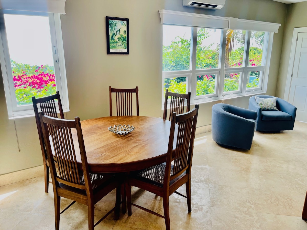 Welcome to Anna’s View—your serene island escape in the exclusive gated community of Shoys. This charming 2-bedroom, 2-bath retreat is ideal for families, corporate travelers, or couples seeking a peaceful getaway. While the outdoor space is cozy, the location is truly exceptional. **Please note - this is a separate apartment, located below a house.