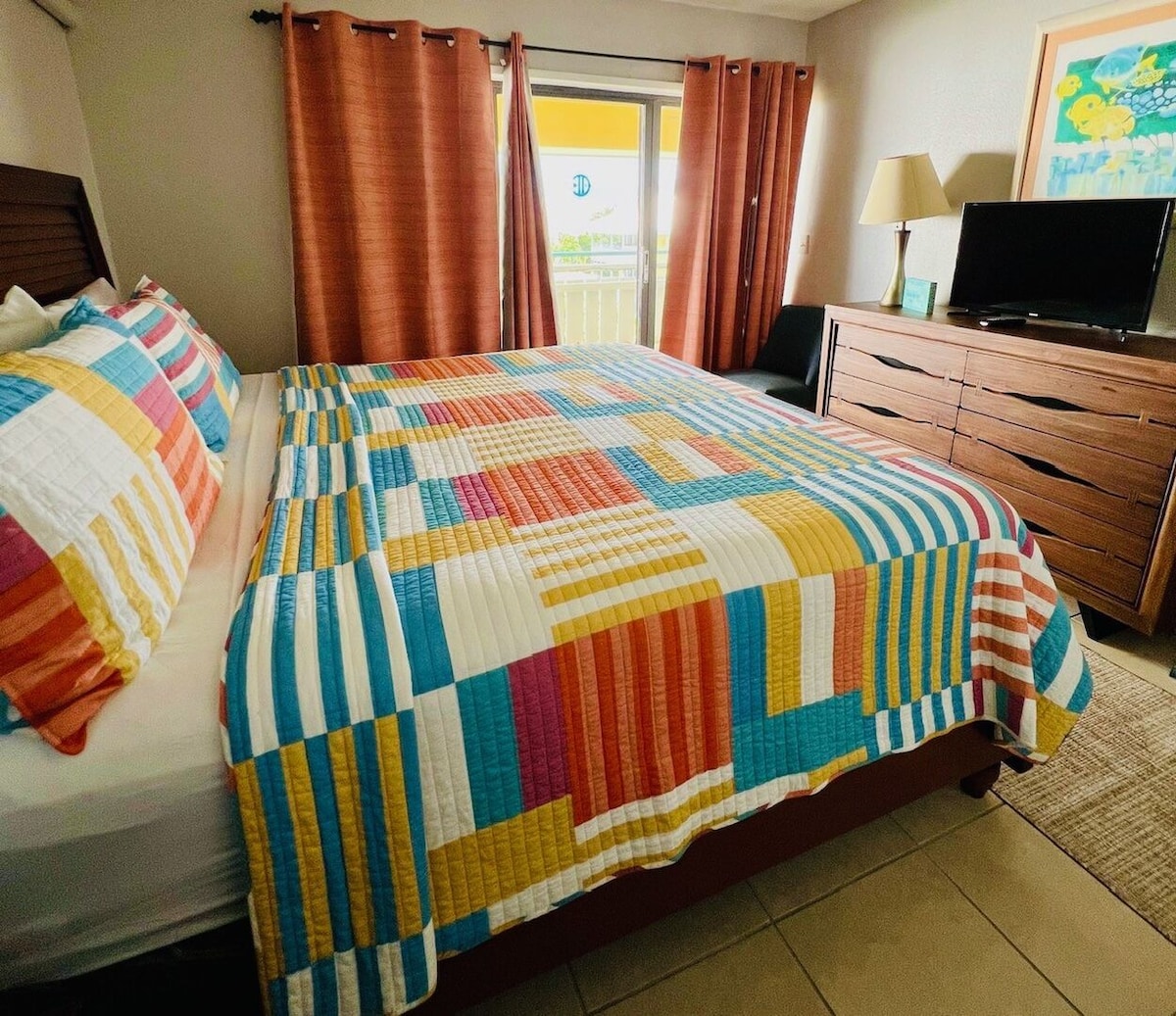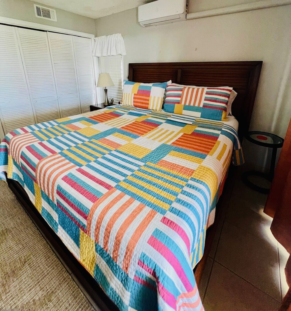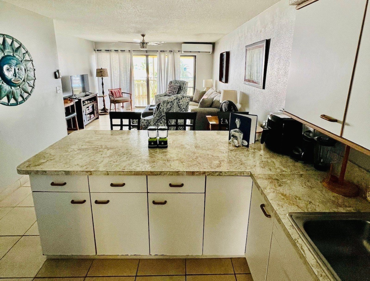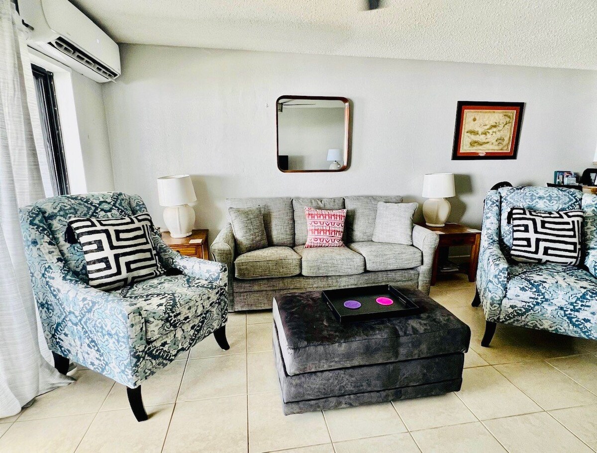 This spacious 2 bed, 2 bath condo has an awe-inspiring view of both the turquoise blue Caribbean Sea and the lush gardens of Colony Cove. A simple breakfast tastes like a gourmet experience on the terrace with these ocean views.