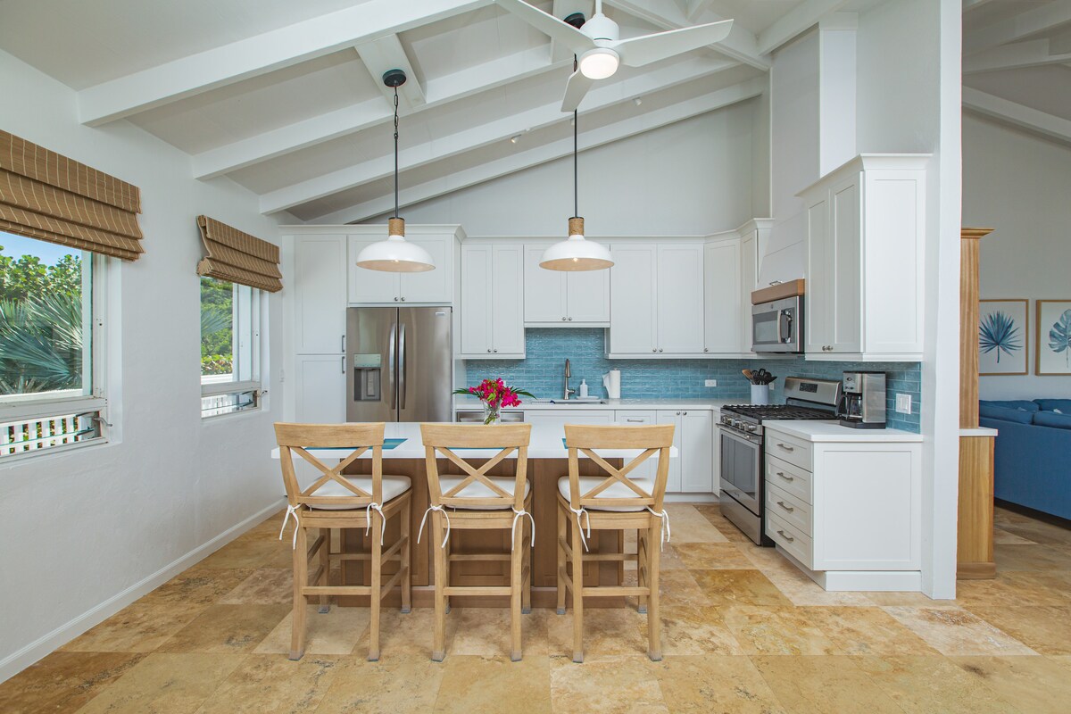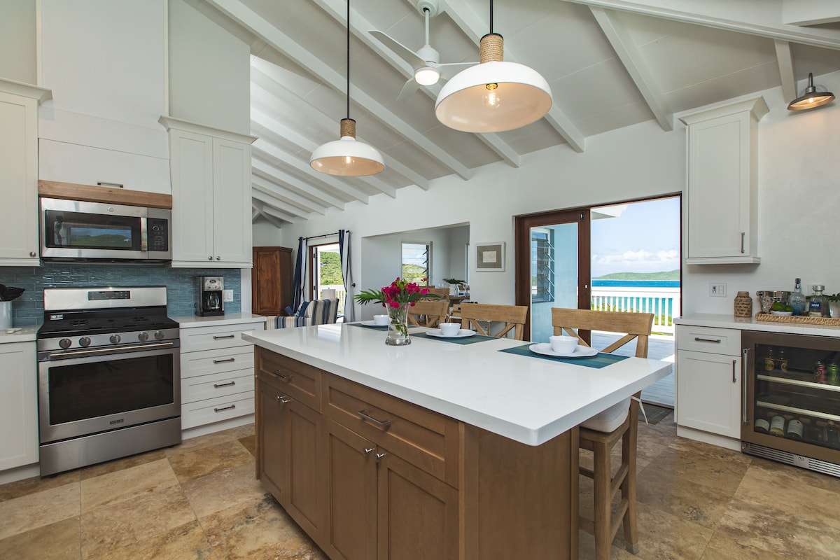 We thoroughly enjoyed our week at Pelican Point. Our family of 4 had plenty of space to relax & enjoy the best views on the island! The house had everything we needed including plenty of towels!! Stephanie was incredibly helpful and we highly recommend this property to other travelers. The east end location was great; close to beaches & very quiet and safe. Do not hesitate to rent this home for your trip. Ps.... the little sandwich shop within walking distance (TLC Kitchen) was a great treat with homemade breads & bagels!