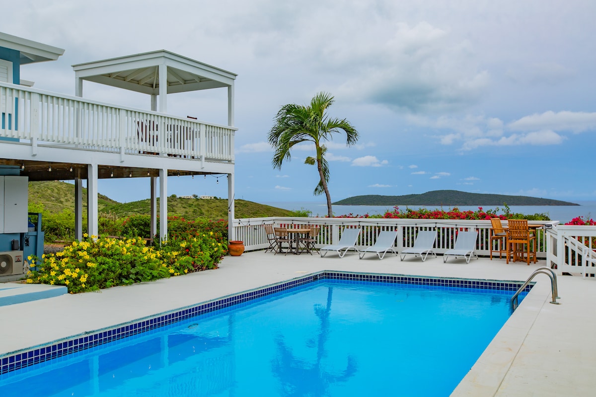 The property manager was very helpful and the house had everything we needed for our stay. The location on the east end of the island was perfect for us; a beach is just down the hill from the villa, Duggan’s Reef Seafood Restaurant is very close by as well, snorkeling at Point Udall (Isaac Bay) is nearby, and there is even a miniature golf course only a few minutes-drive away. Besides the beautiful views, it was also really peaceful and relaxing just hanging out at the villa with the soothing ocean breezes; whether we were at the pool, grilling dinner on the deck, or just resting in the hammock watching the stars.