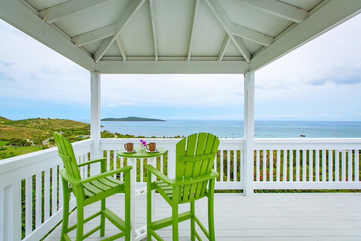 We arrived and Stephanie was there to greet us. She was a treasure chest of tips and recommendations. The addition of the 2 gazebos give wonderful shade and allow you to sit and take in the amazing view of Buck Island for as long as you want. Make a rum punch (fixings left complementary :) ) and plan your stay!!! We sat for hours with the binoculars watching the boats at the island and watching the sailing school kids at the yacht club down the hill. The couch was comfy for a movie after a day in the sun, and there are many little restaurants just a short drive away. We recommend Castaways for Bingo night on Wednesdays and Ned from Ziggy's Market was very helpful when we needed an ATM. We recommend Llewellyn's Charter to Buck Island. It was just the 4 of us, it doesn't get any better than that! And don't forget to get a copy of his Calypso CD!!