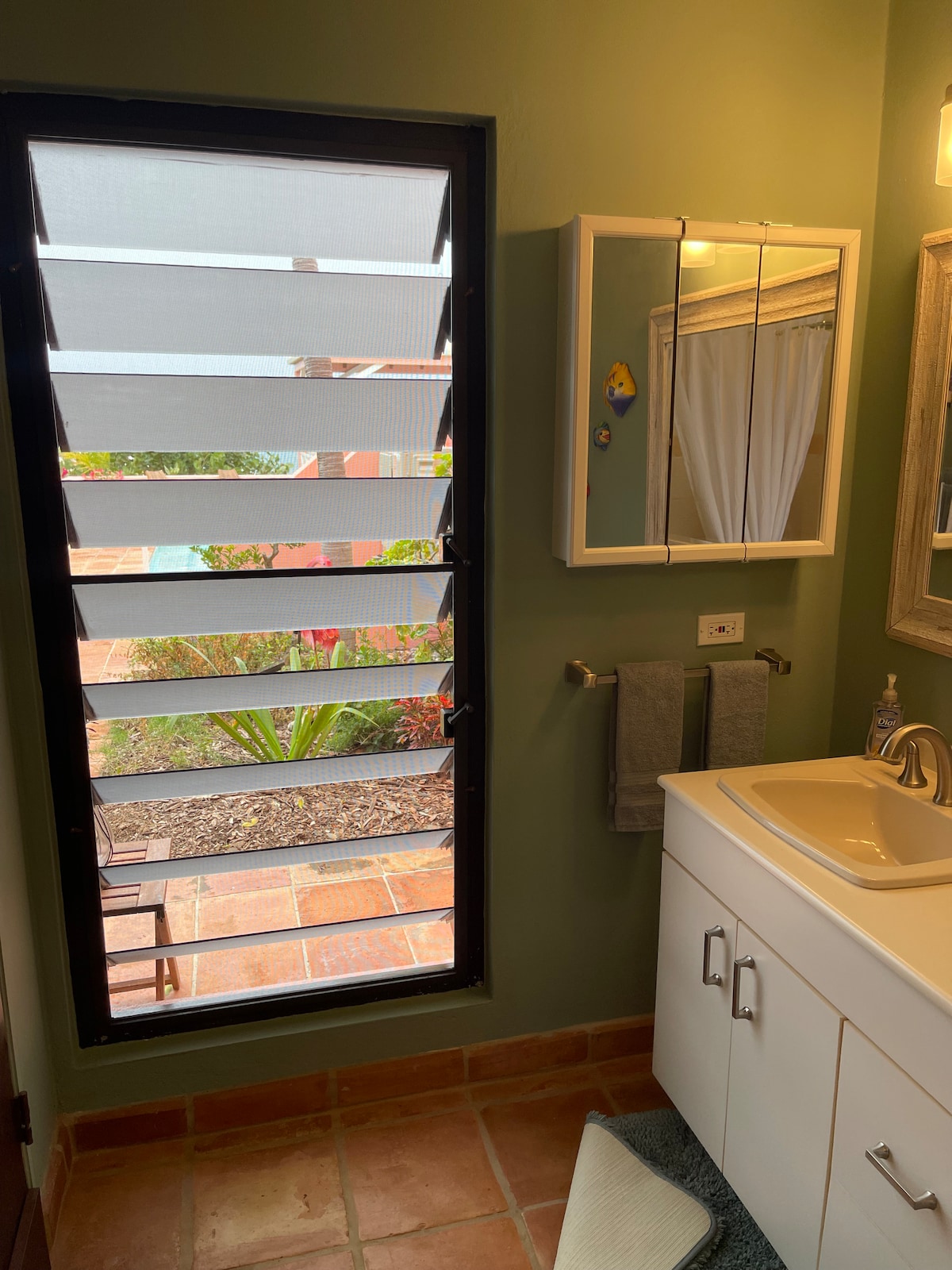 We want you to be cool at night while you sleep but we respectfully ask that you do not run the AC all day long while you are out, by the pool, exploring, working outside of your suite or when you are at dinner in the evening. Please feel free to leave the fan on when you are gone. The rooms cool down so quickly it is not necessary to leave it on. You should set the temp to 74-76 degrees so you do not freeze your unit up. You will be without AC if it stops working. Our system monitors all of our split AC temperatures on the property as part of our system safety protocol. The reason for all this AC talk is that electricity in the US Virgin Islands is 5 times higher than off-island. $10 on the mainland for electricity is $50 here for the same kWh's. Managing AC use is key to keeping our rental prices down for our guests. If you are using AC during the day when you are gone, at the pool, etc. or with windows/doors open you will be charged extra for the electricity you have used. So far we have had no one abuse this and no need to charge anyone extra for anything. We are hopeful it will stay that way! Please remember to conserve water. Our water on the island comes from cisterns that are filled by the rain so we always need to be mindful of our water use so we do not run out of water. This is an island so we do not have "city" water! Finally, if you have an accident on the linen's in your room, (blood, spills like wine, makeup, staining food, etc.) please let us know immediately. We can change linens out and stain treat. Much better to let us know instead of waiting until it's too late to fix!