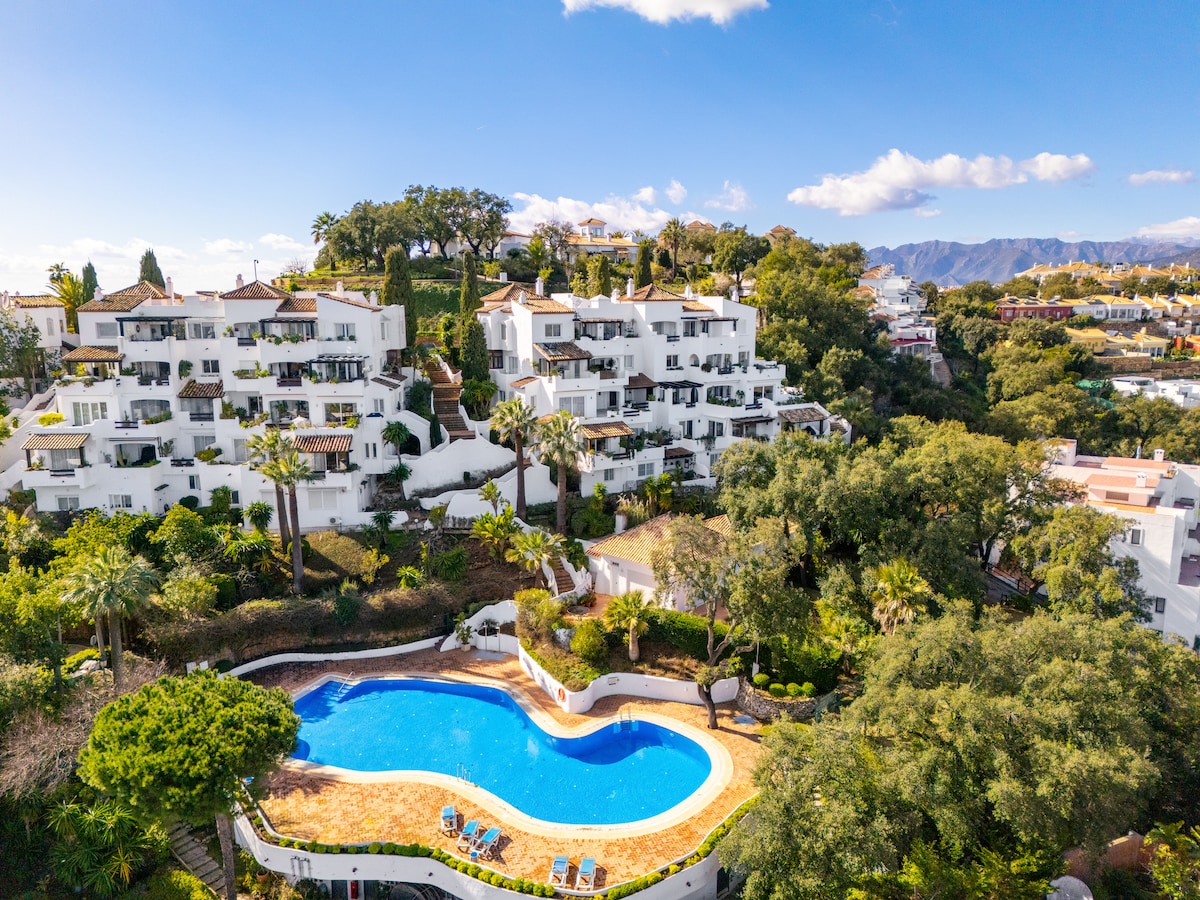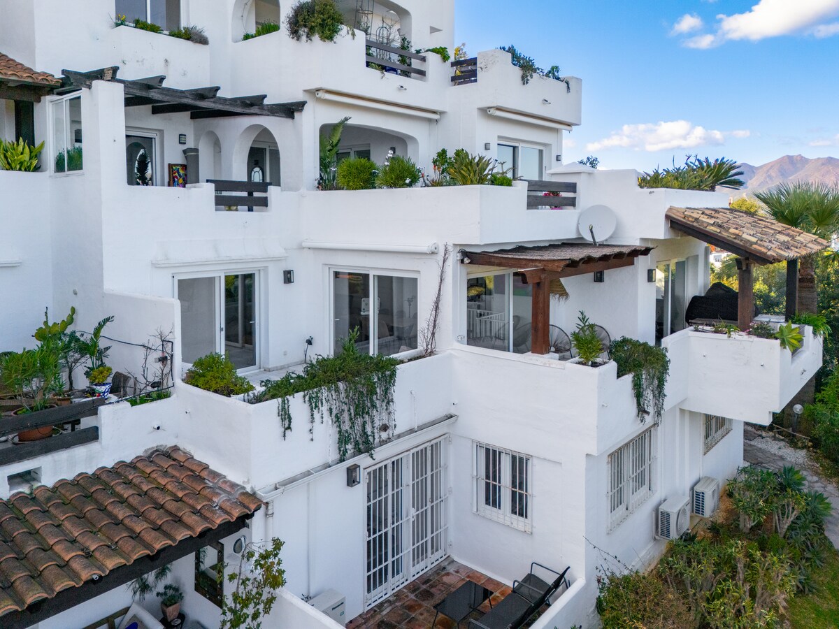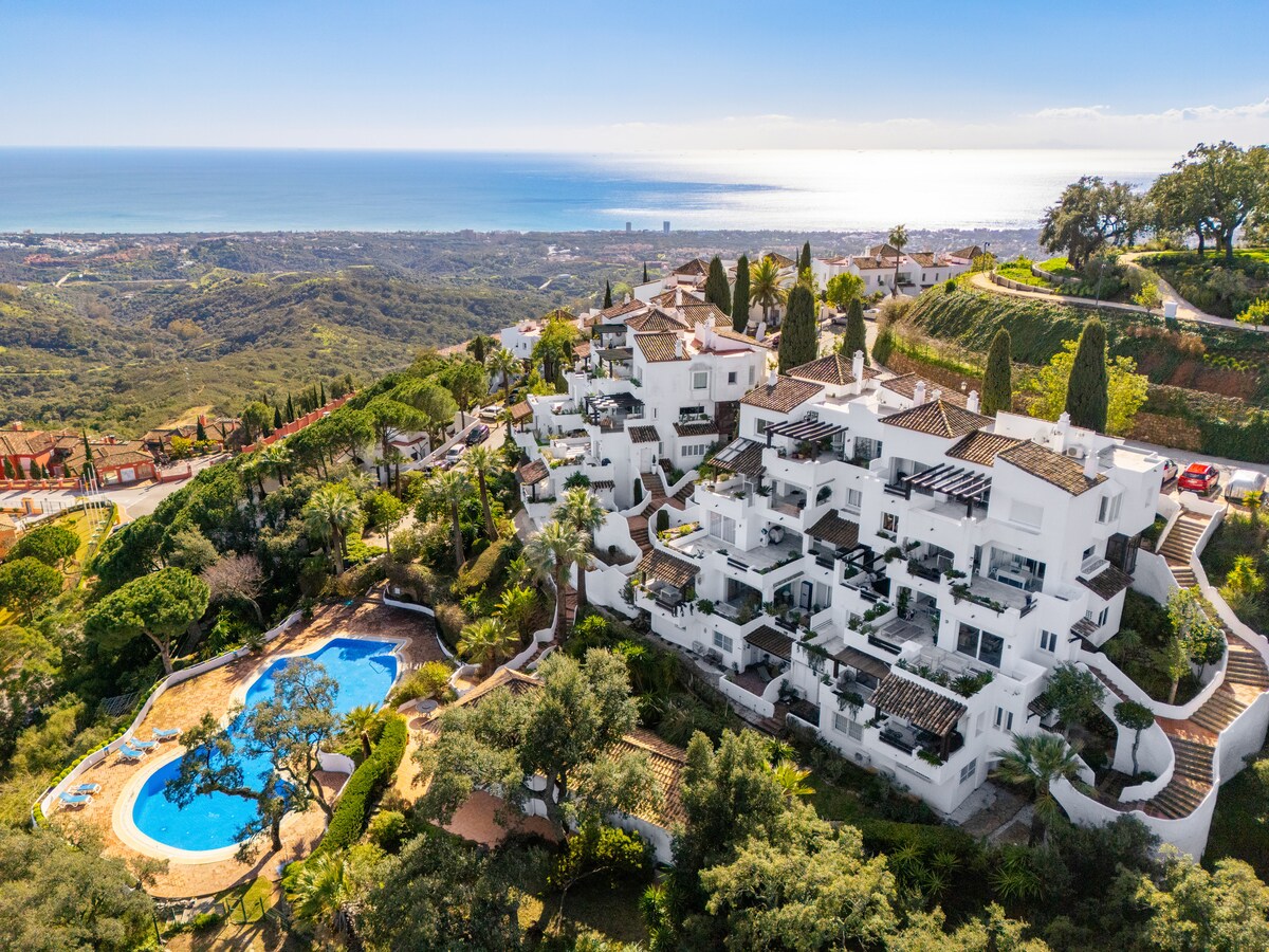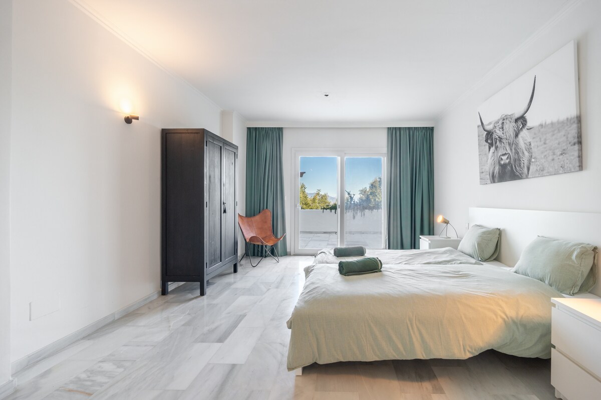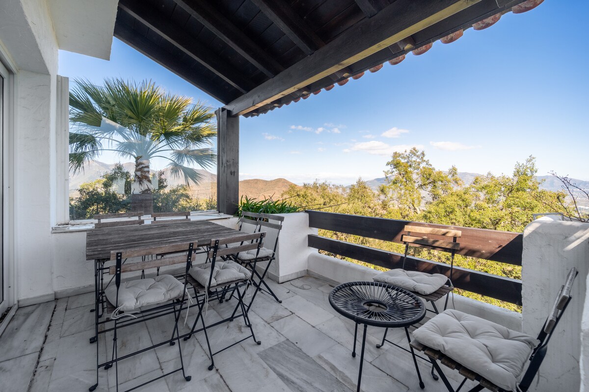 Discover a stunning, fully renovated 3-bed, 3-bath apartment in the hills above Marbella.