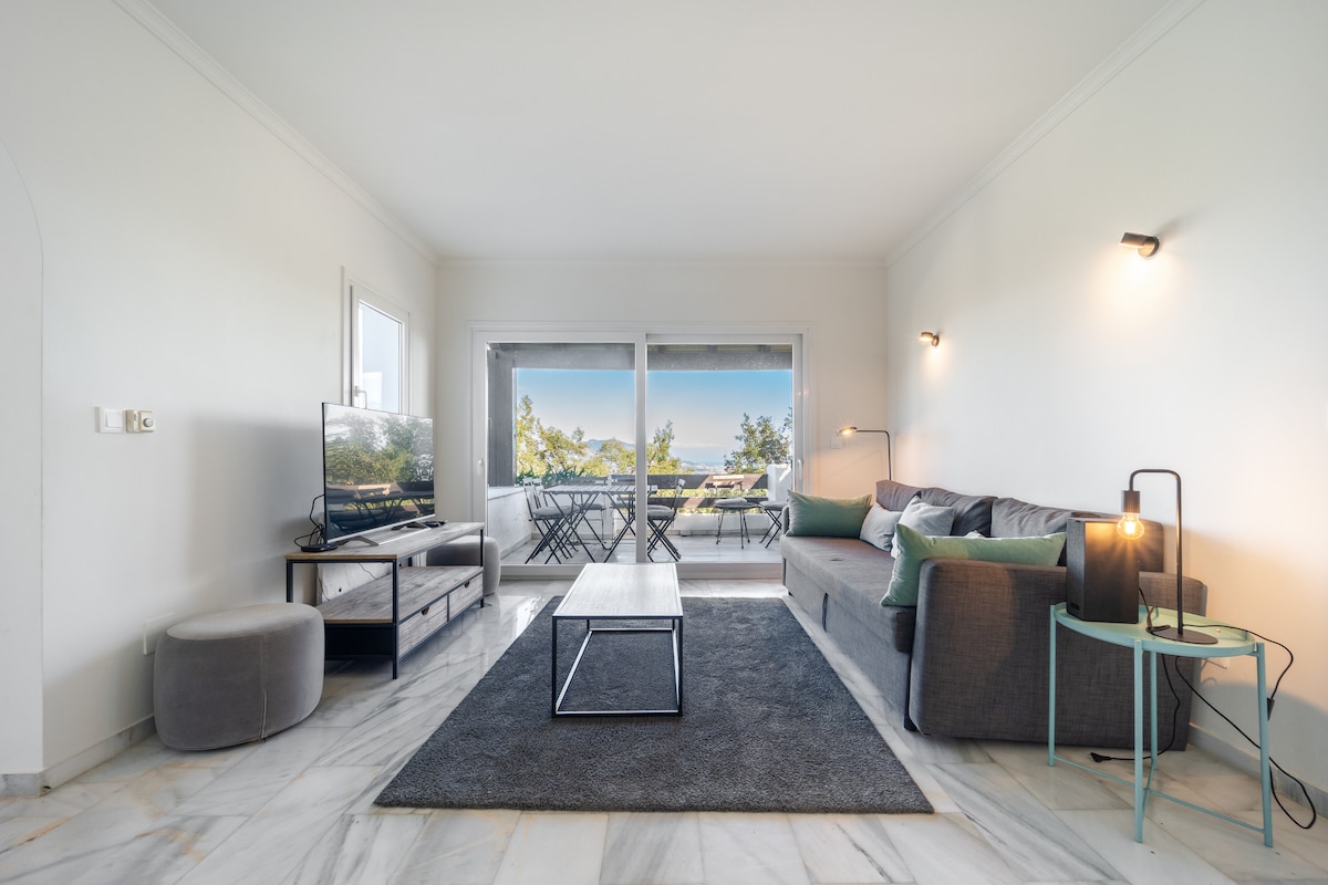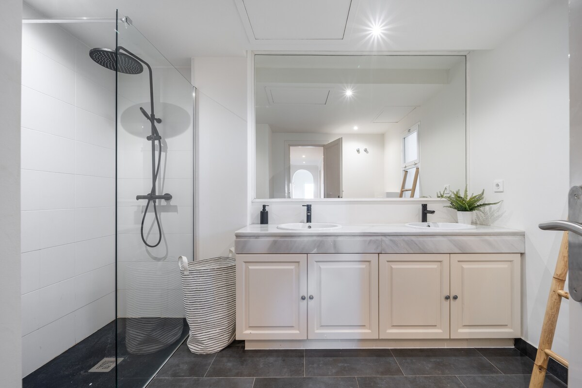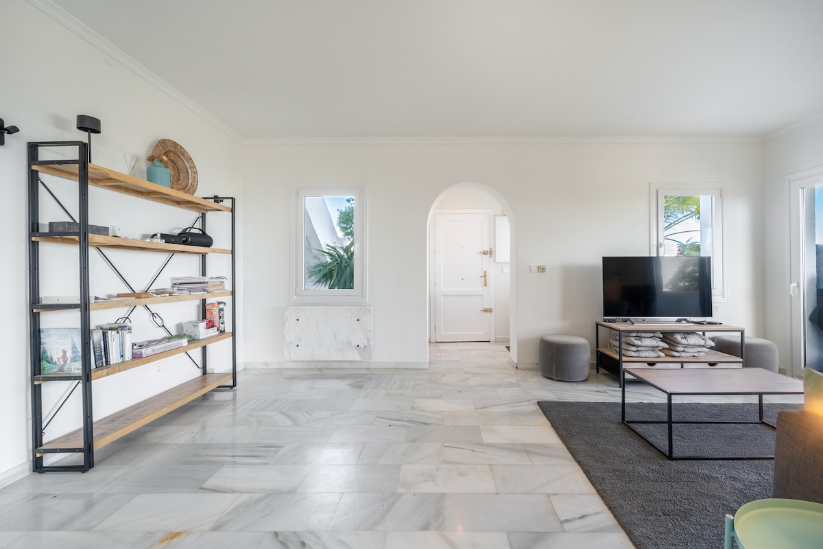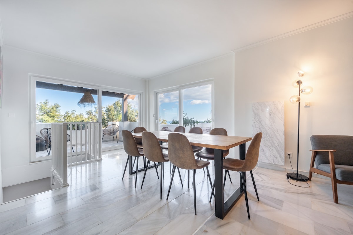 Discover a stunning, fully renovated 3-bed, 3-bath apartment in the hills above Marbella.