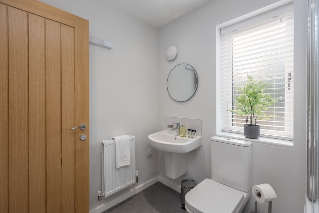 On the ground floor you’ll find yet another bedroom with a king-size bed. Guests using this bedroom will also find a second bathroom across the hallway. This features a shower, toilet and wash basin.