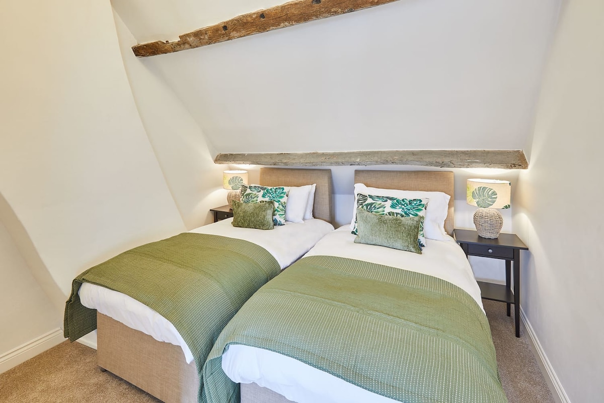 Located on the first floor, and home to a comfortable king size bed with luxury white bed linen, you’ll certainly enjoy your sleep in the master bedroom at Waterlily Cottage. There is plenty of room for storage with hangers and bedside drawers that are accompanied by lamps.