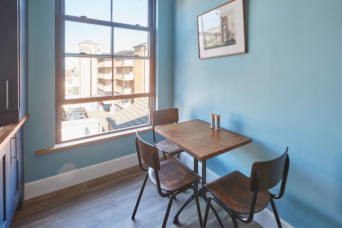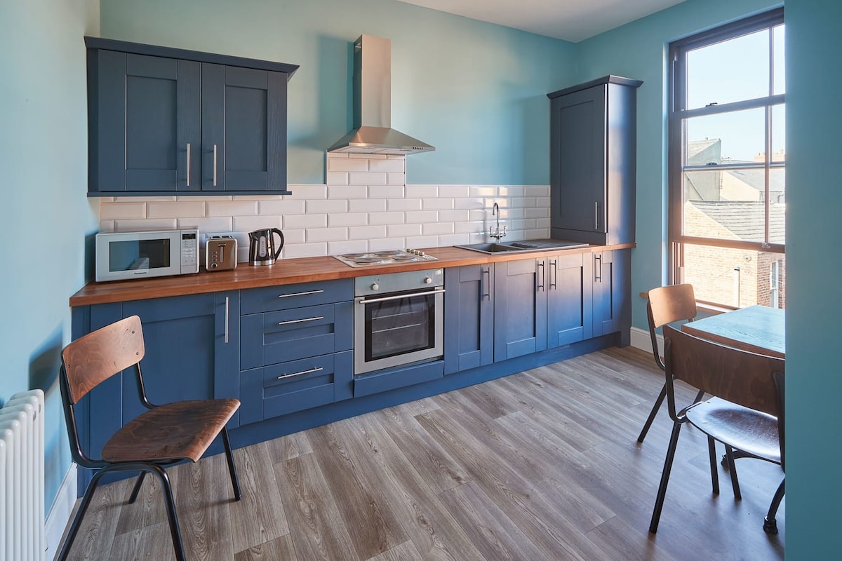 Really enjoyed a long weekend in Saltburn to coincide with the annual food festival. Pros: Beautiful property. Modern and very clean. Amazing (& powerful) shower. Large space inside. Location - can’t get any more central than this! The front door is literally right onto the pavement and you must go for pizza at the restaurant under the flat, best we’ve ever had. The location is just perfect with free and easy to find parking available on both the main road and side streets. We just park the car and leave it until we go home as everything in Saltburn is within walking distance. Conns: Up a few flights of stairs, we were fine but some may struggle as it’s on the top floor. Noise outside - it was food festival season & summer time and direct underneath is a very popular bar. It did quieten down at 10:30pm ish though but we knew it wouldn’t be uber peaceful as it’s on the main road. Overall we were really happy staying here. Very comfortable and the location is spot on!