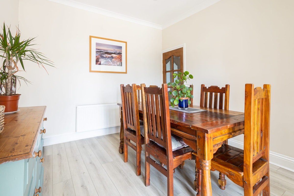 The Willows is a two-storey holiday let with a living room, dining room, and fully equipped kitchen.The living room features a comfy sofa, matching armchair, and a large Smart TV to stream your favourite apps and watch TV shows.