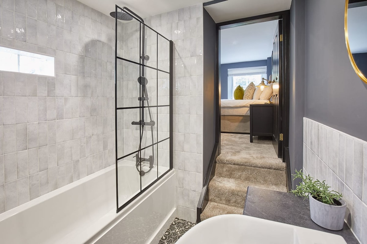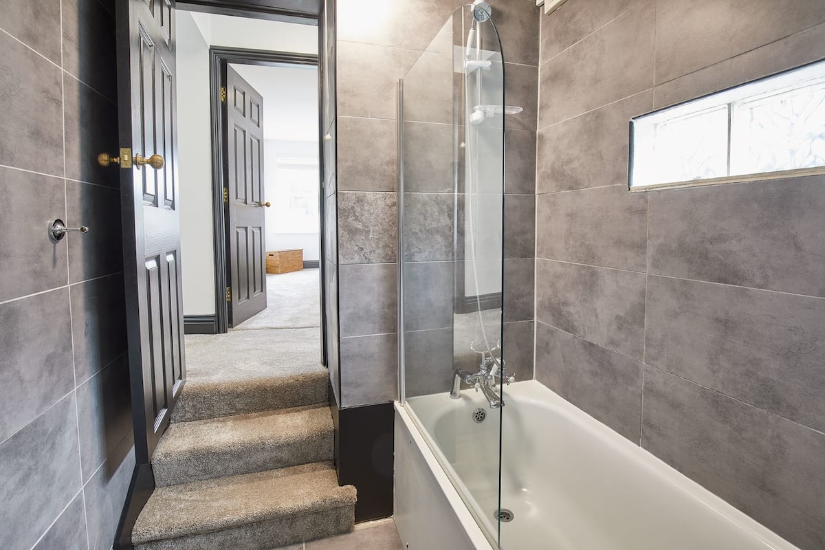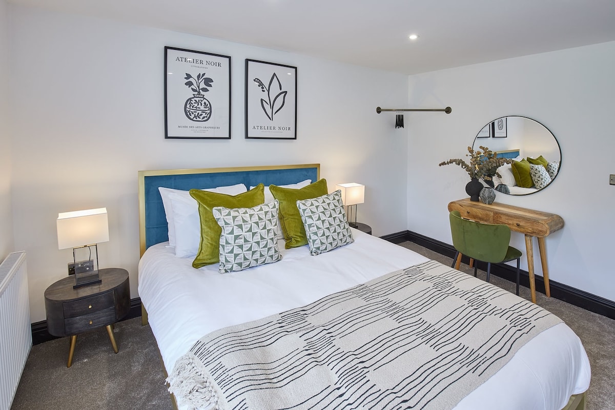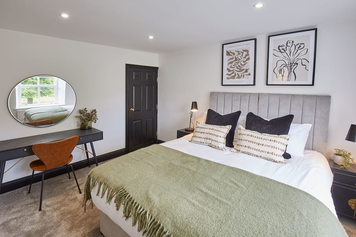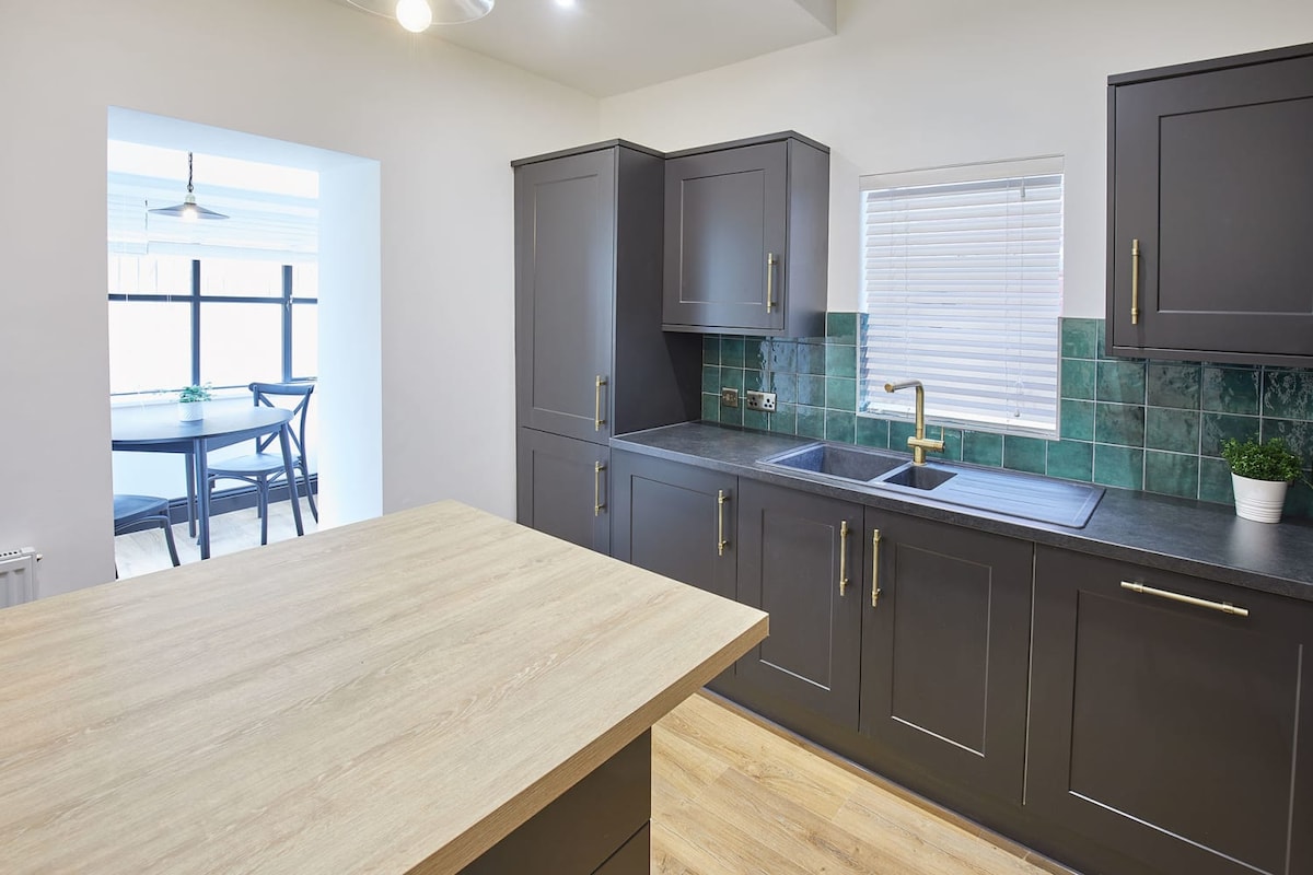 On the ground floor, you’ll find a newly-modernised kitchen, mixing the stylish grey theme of the house with quality brass fixtures and fittings. It has everything you need with an integrated dishwasher, fridge freezer and oven in this wonderful cooking space. The property also boasts an additional utility room and larder space with breakfast bar seating. Move through to the dining room and you’ll find a grand solid wood table and industrial style chairs with seating for 12 guests, creating an ideal setting for dinners together after a long day. On this floor there are also two lounge areas with a range of welcoming sofas and armchairs offering plenty of seating and relaxation space. On top of this, there’s a separate games room with a pool table for families and friends to enjoy, and you’ll also find the first king size bedroom, with en suite toilet facilities, on this floor.Follow the unique and upcycled artwork that helps give the property its character up the stairs to the first floor, where a further five classically decorated bedrooms await. There are 3 king rooms, one double and one twin room. Each room also features signature piece furniture and plenty of storage for your clothes and accessories during your stay. Carrying on the property’s industrial but welcoming theme in each, three of the bedrooms also have modern en suite showers or baths. There’s also a spacious and modern family bathroom for everyone to use.