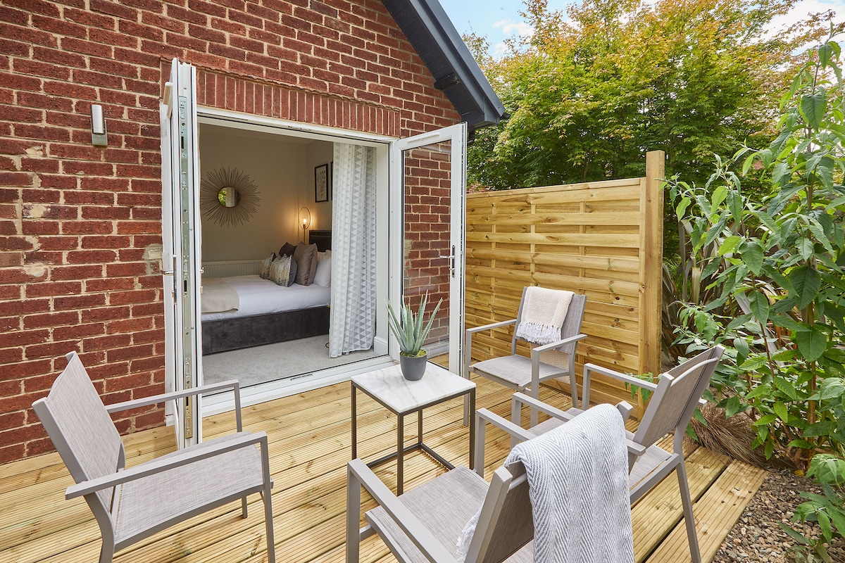 Glass double doors open out onto a private patio area complete with decking and outdoor furniture. Surrounded by lush greenery, this is the perfect spot to relax. Whether it’s on a morning with a coffee or on an evening with a glass of bubbly, this is an added luxury in Whitby!