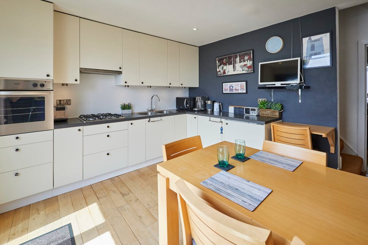 Great place near to the Harbour. Stairs are steep to the top bedroom, but as it overlooks the harbour it was a room with a view. Bedrooms were comfortable and we had two bathrooms. One slight niggle, a bulb blew and it tripped the circuit breaker. An engineer called but he could not find the consumer unit. We managed with the wall lights and standard lamps as we were only there for the weekend. It was a great stay and I would recommend it