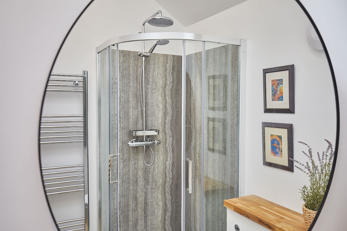 The kitchen is designed with a clean aesthetic and fitted with high spec fixtures and fittings. Fully equipped with oven, hob, microwave, toaster, kettle and a fridge freezer you have everything you need to prepare meals during your stay. Cookware and crockery are supplied and you have the added luxury of a dishwasher.