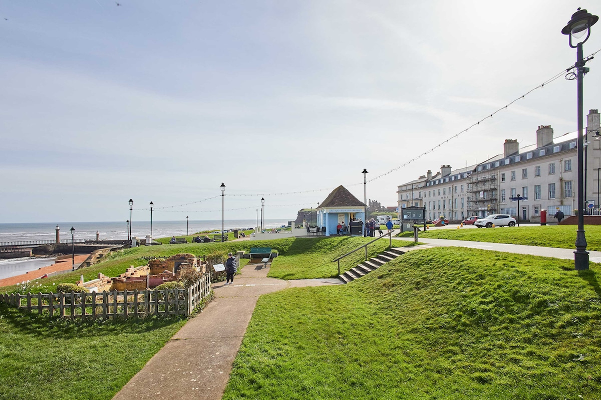 Immaculate and modern flat. One of the most expensive we looked at, but worth it for us, due to the sea view, plus proximity to West Cliff prom, dog walks, coffee outlet opposite, and paths down into town centre. ‘Host n Stay’ are rather prolific with messages, but that’s maybe better than too few! In a quiet November slot, we always found a parking spot within 80m, but in summer or events maybe harder! Whitby is rather upgraded from trips in our early days, and even dealt with the coeliac in our party! (Eg Magpie Fish n Chips, plus we found 4 real ale bars!)