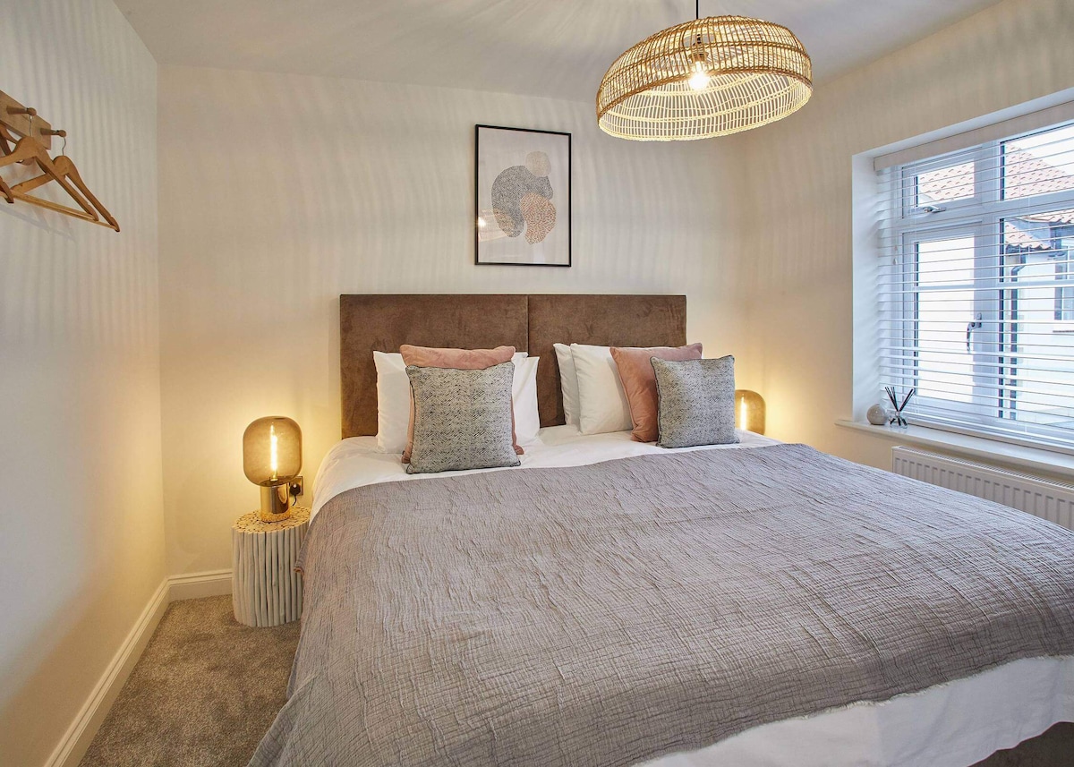 LOVED our little getaway this week. 2 families of 4 with children ranging from 7 to 14. Great sized rooms with ample bathroom space with a bathroom for each bedroom. Towels included- great quality as well as great quality bedding too. Excellent kitchen area with tea, coffee, milk, dishwasher tabs and everything else you could need. We cooked basic foods while there- everything worked as it should. Furnished enough so we had everything we needed, included bed-side light in each room, but sparsely enough not to be cluttered. Great finish on everything. Water pressure good all over the house- in all bathrooms. Good wifi connection. Will definitely book again- amazing price for the location and facilities too. One minor drawback is the check-out time at 10am seems very early as check in isn’t until 4pm. 11am would be more comfortable but this didn’t impact on my 5* score rating. Thank you for a lovely stay.