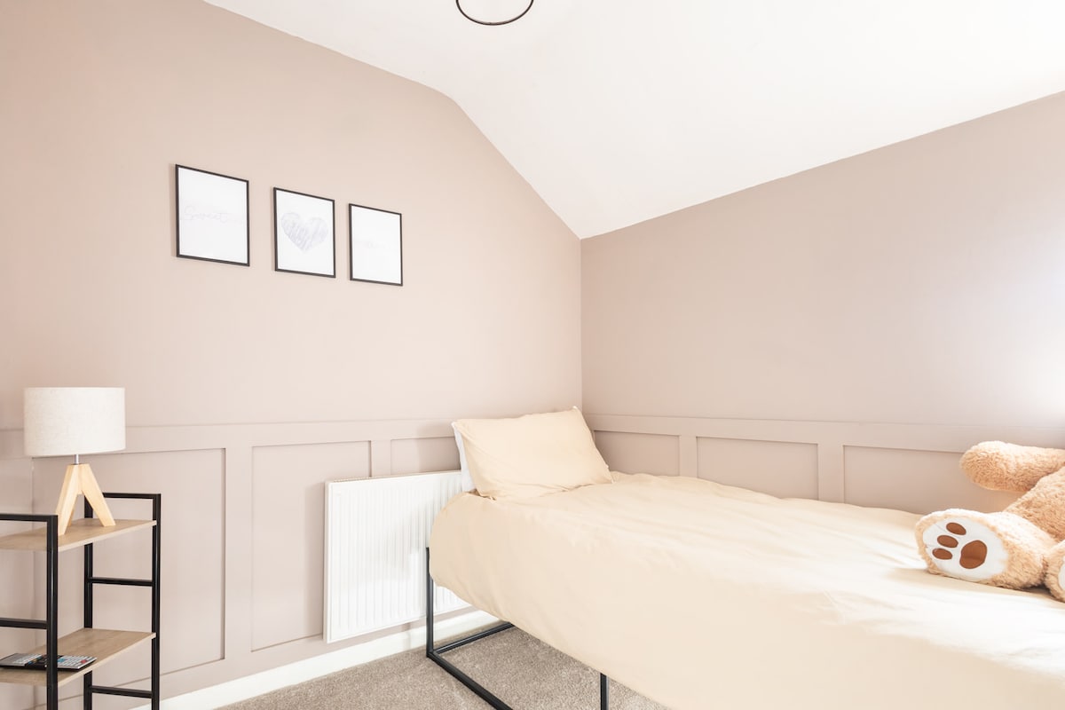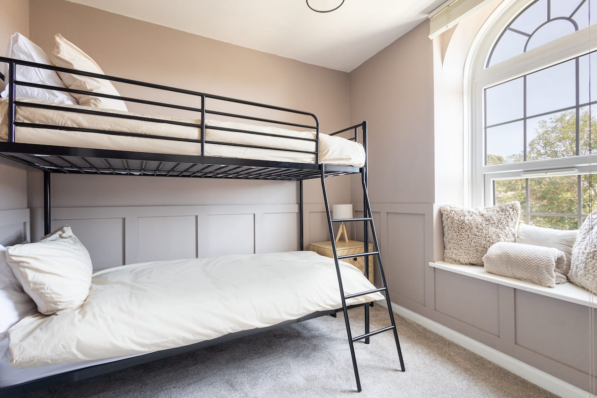 Take the stairs up to the second floor and you’ll find three bedrooms. The first bedroom has a single bed while the second bedroom features a bunk bed and the third is a double. Each bedroom has storage space and premium bed linens to ensure you have the most comfortable stay.