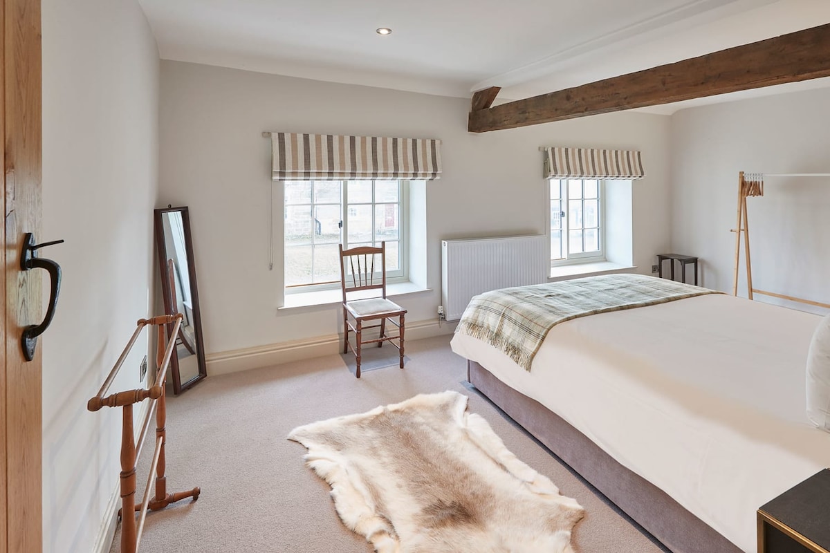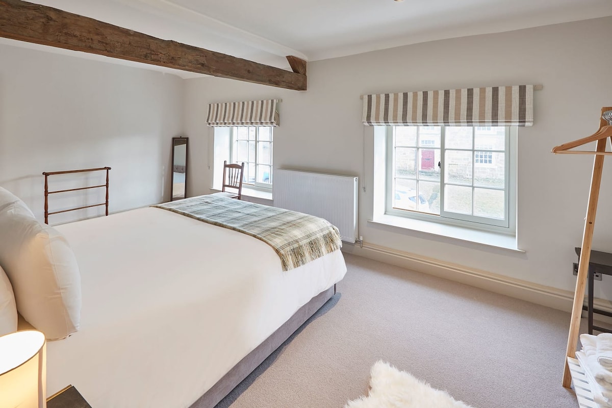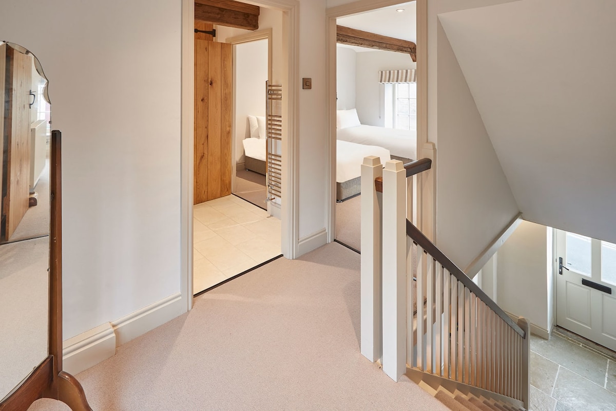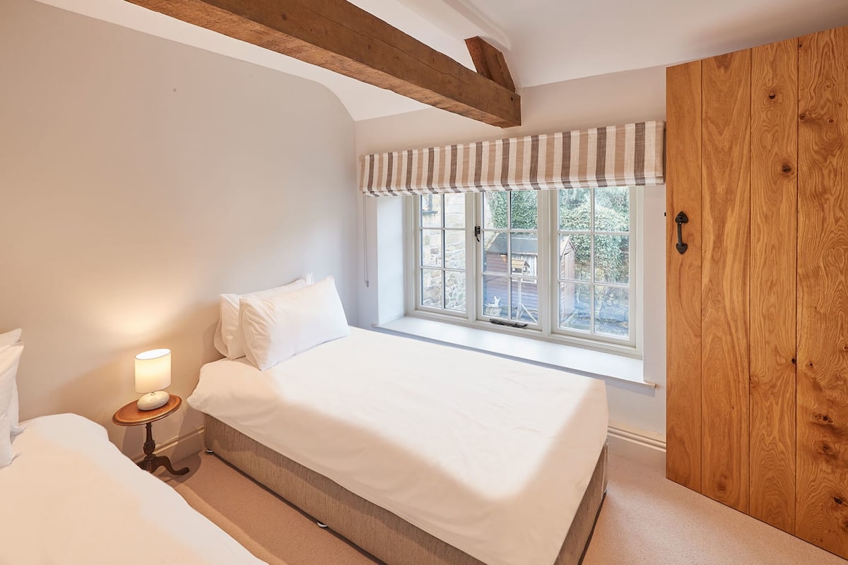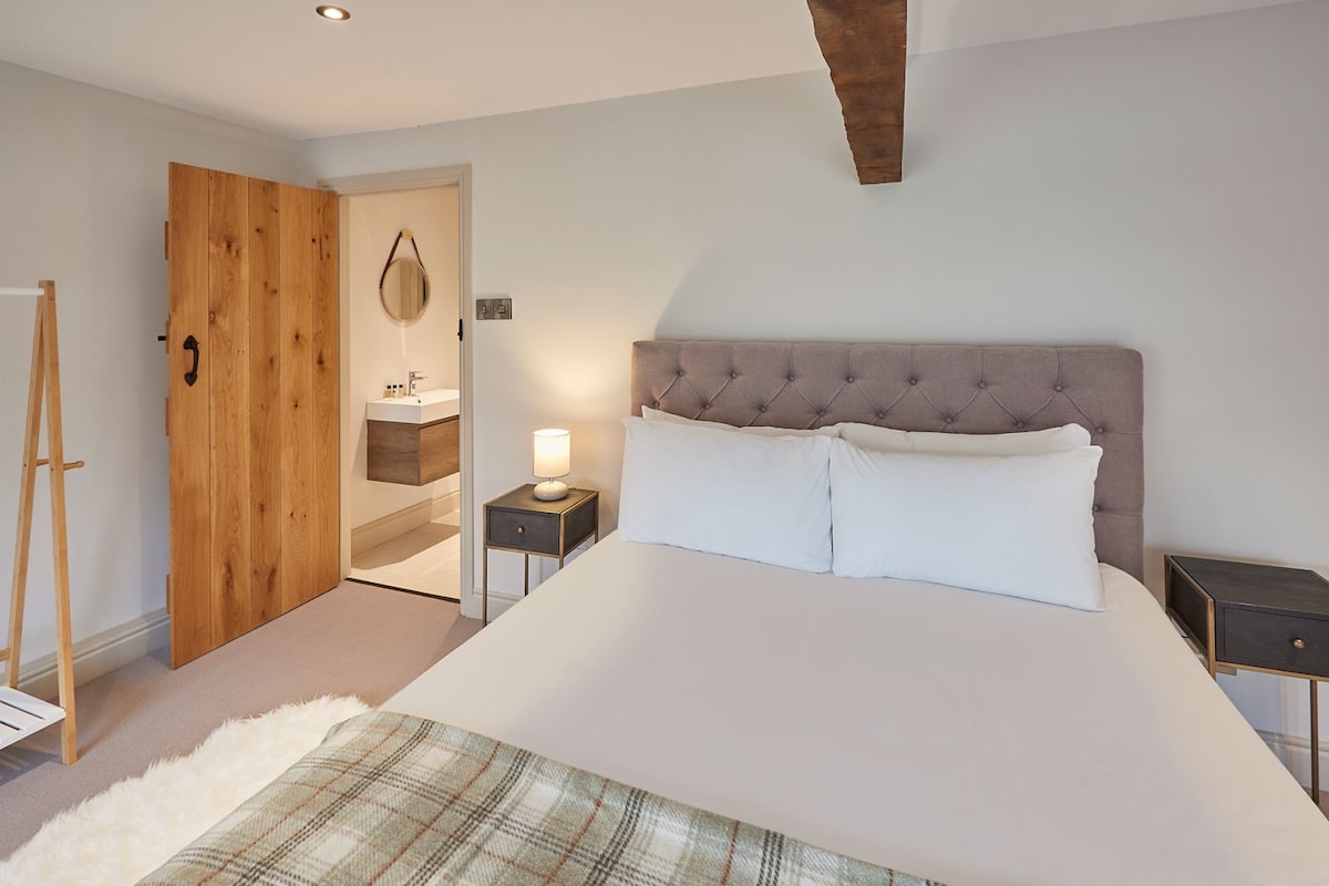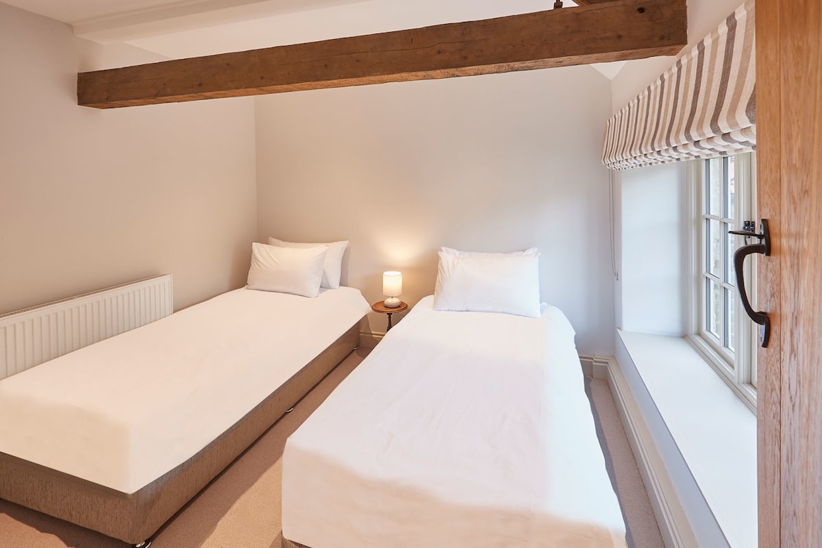 Head upstairs to the first floor and you’ll find three stylish bedrooms. The master bedroom has a luxurious Super King bed and an ensuite bathroom with a walk in shower, WC and basin. The second and third bedrooms are twins. Each bedroom has crisp, white bed linens and plush bedding to ensure you get the best sleep possible.