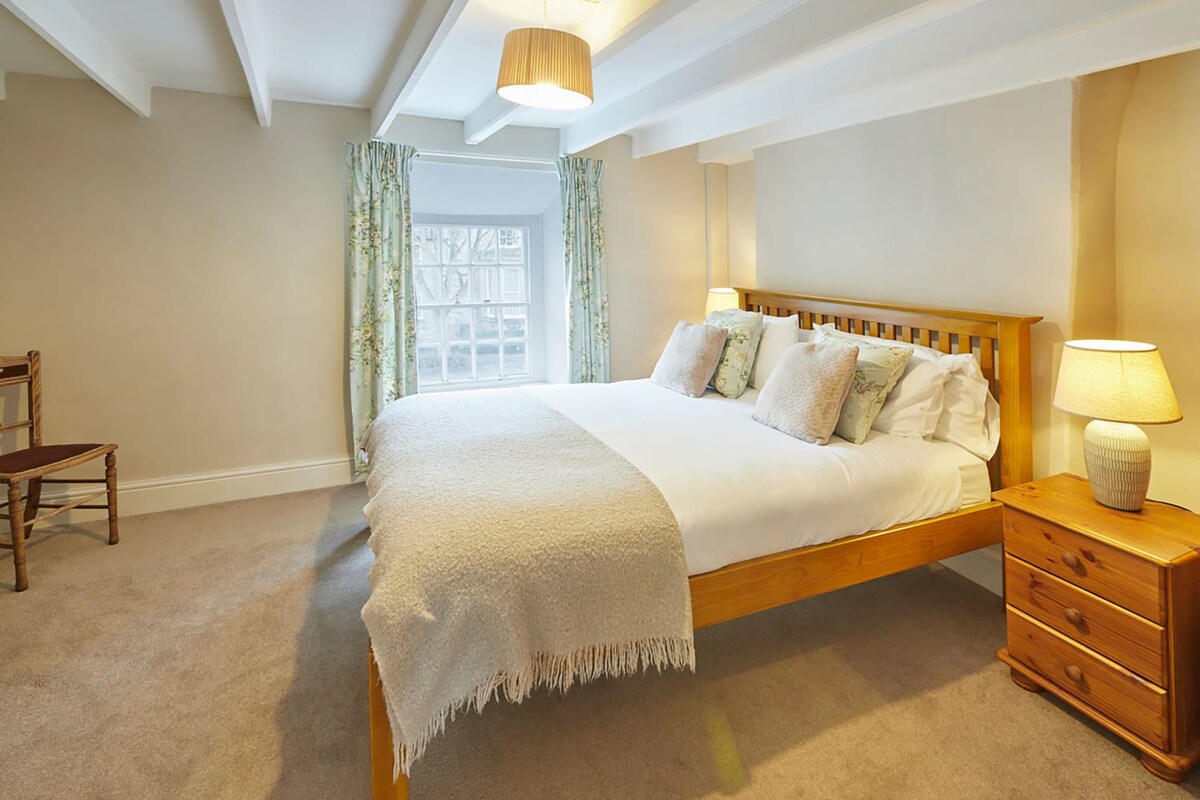 Take the stairs again and you'll reach the second bedroom. With sloped ceilings and exposed beams, it's a really cosy space. Ideal for teenagers and solo members of your group, there are twin single beds. All of the beds at Rose Cottage have premium bed linens and plush bedding to ensure you have a comfortable night's sleep.