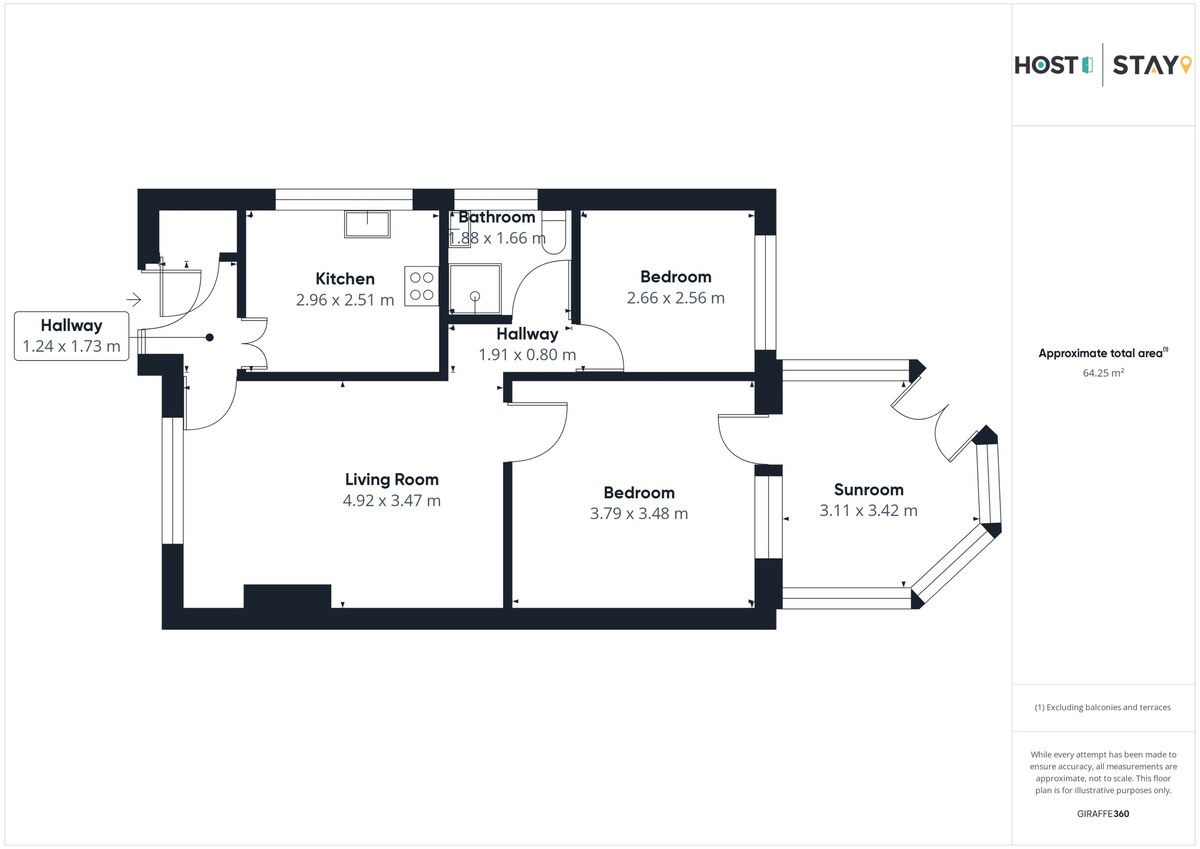 3 guests · 2 bedrooms · 2 beds · 1 bathroom