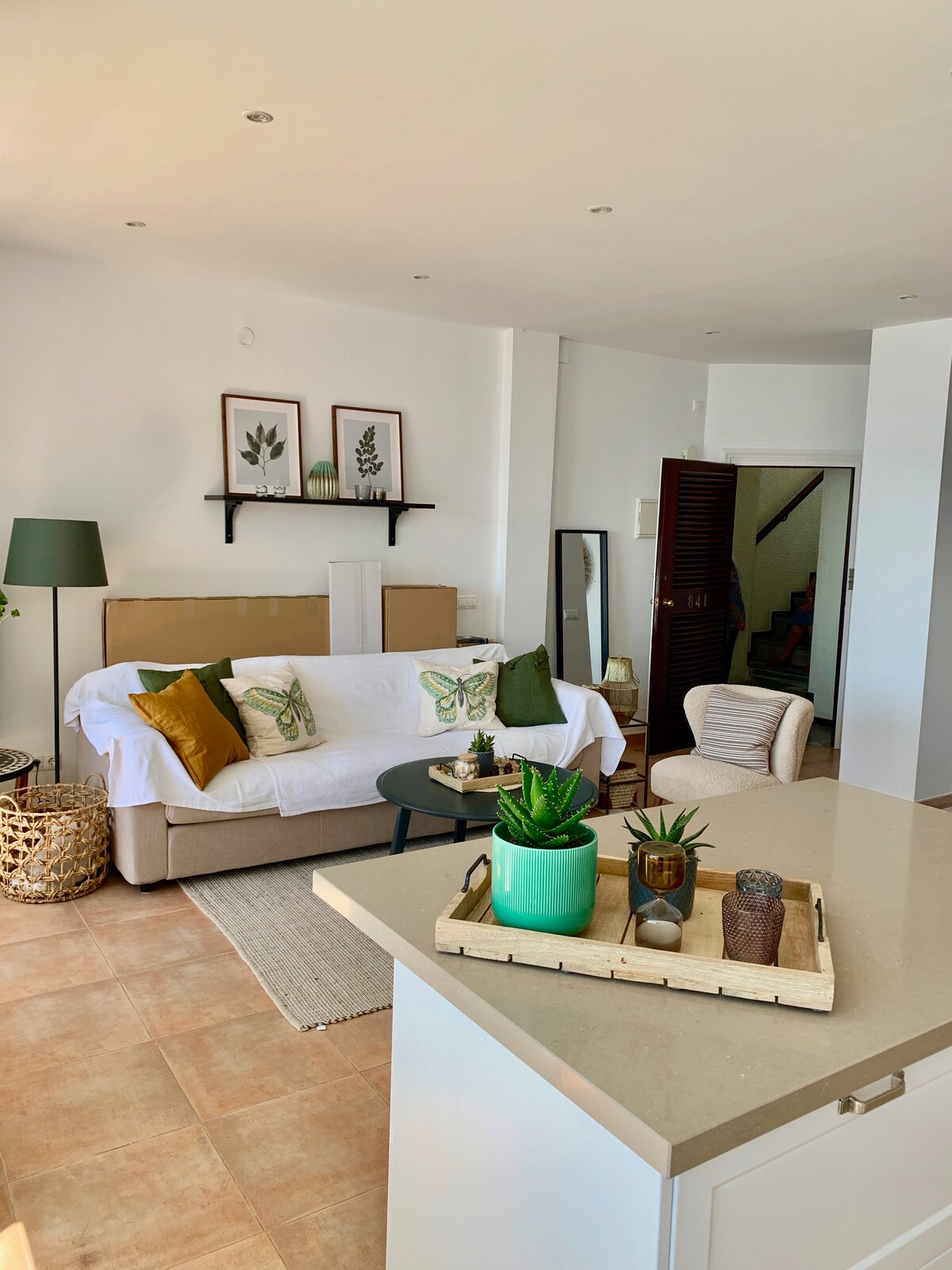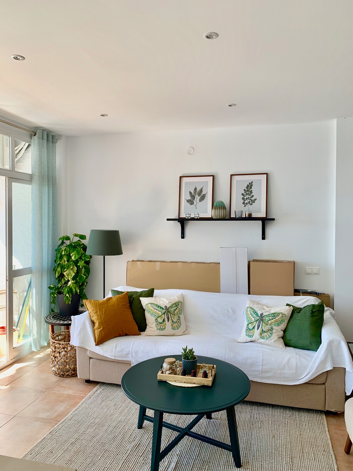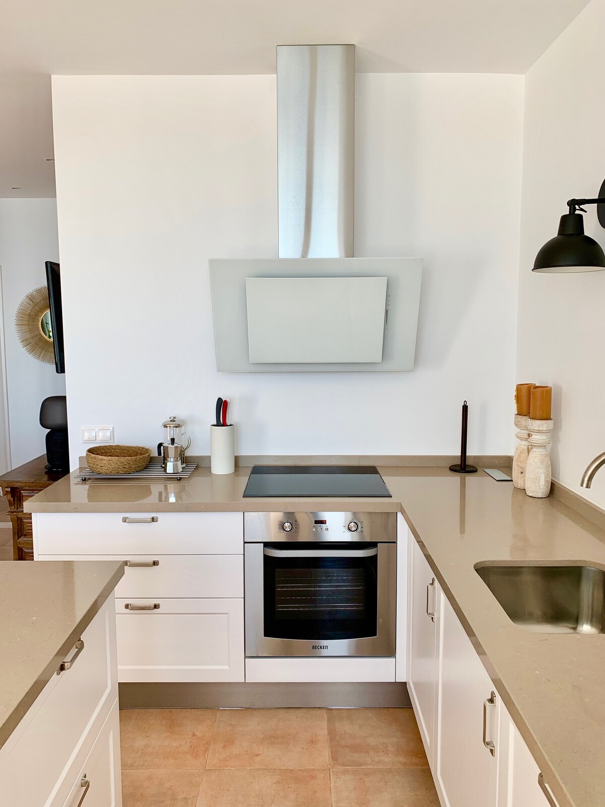 Modern, light and airy, recently refurbished in light colors that will make your stay calm and relaxing, open plan well stocked kitchen with all appliances, should you fancy to cook and bathroom with bath.