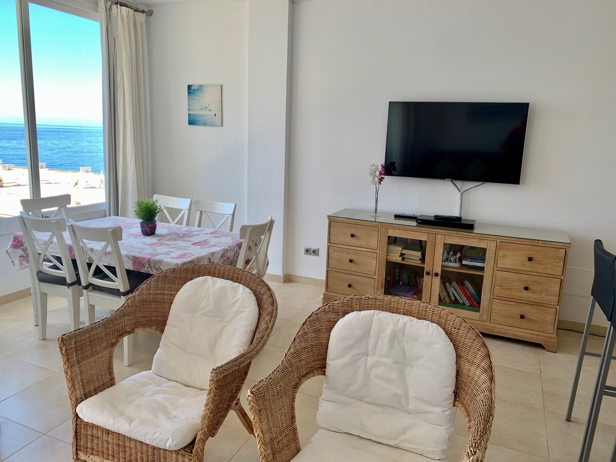 This is a beachfront 2 bedrooms apartment for up to 5 guests on the 7th floor of the B block.All on one level, South facing, sun all day, large terrace for al fresco dining or sunbathing with nice pool and garden views.