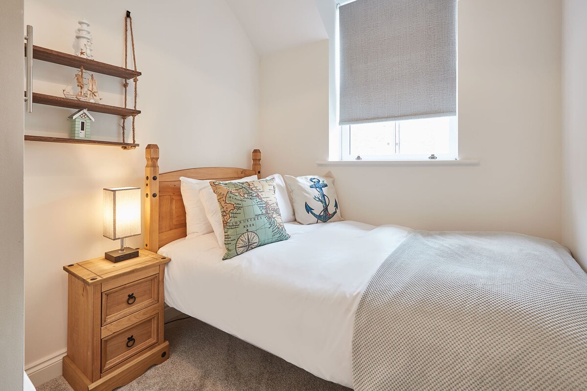 Outside you’ll find an enclosed patio area. This cosy space includes a seating area and charming nautical decorations.