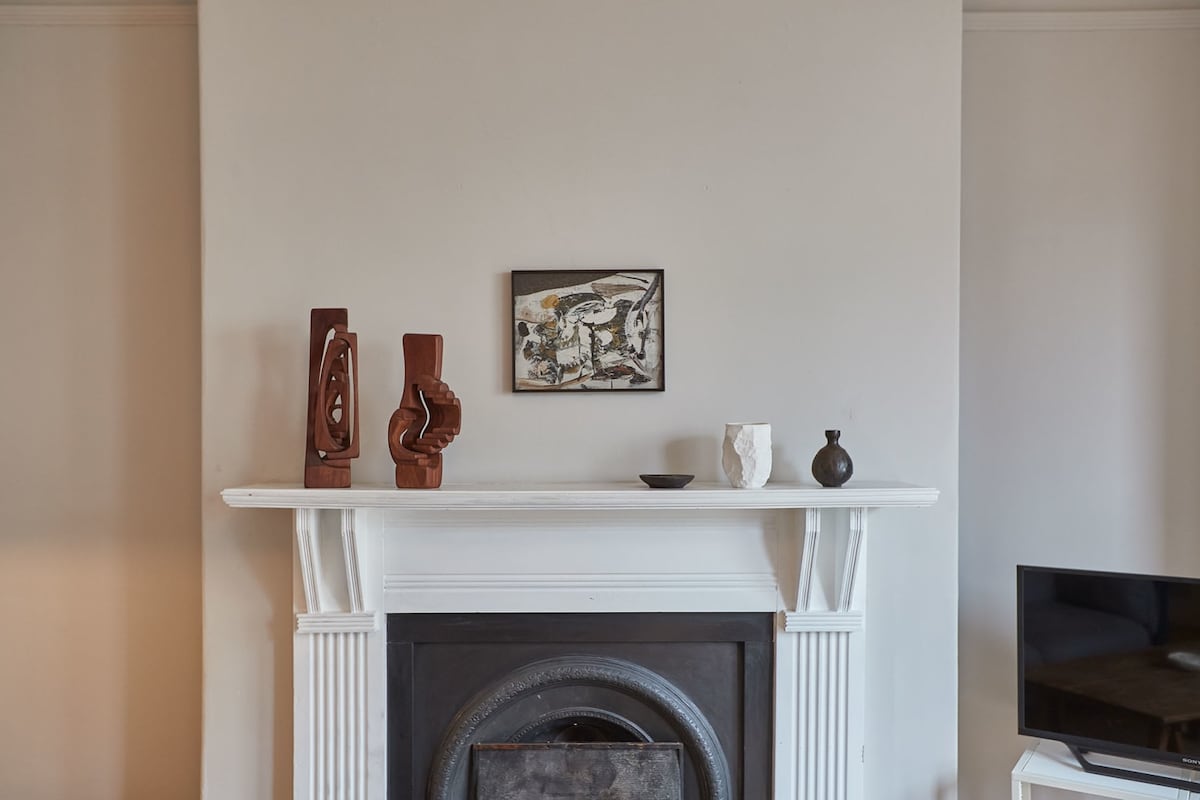 With high ceilings and original wood floors, Emerald Residence has a light and spacious feel. The building is traditional in style but features quirky art prints and furnishings throughout.On the ground floor, you’ll find a homely living room, dining room and kitchen. Ultra spacious and homely, the living room has comfy sofas and a flat screen TV. Perfect for socialising and enjoying meals together, the dining room has muted pink walls and low lighting to create a cosy feel. Fully equipped for self-catering stays, the kitchen has modern appliances and cookware so you can easily prepare meals during your visit.