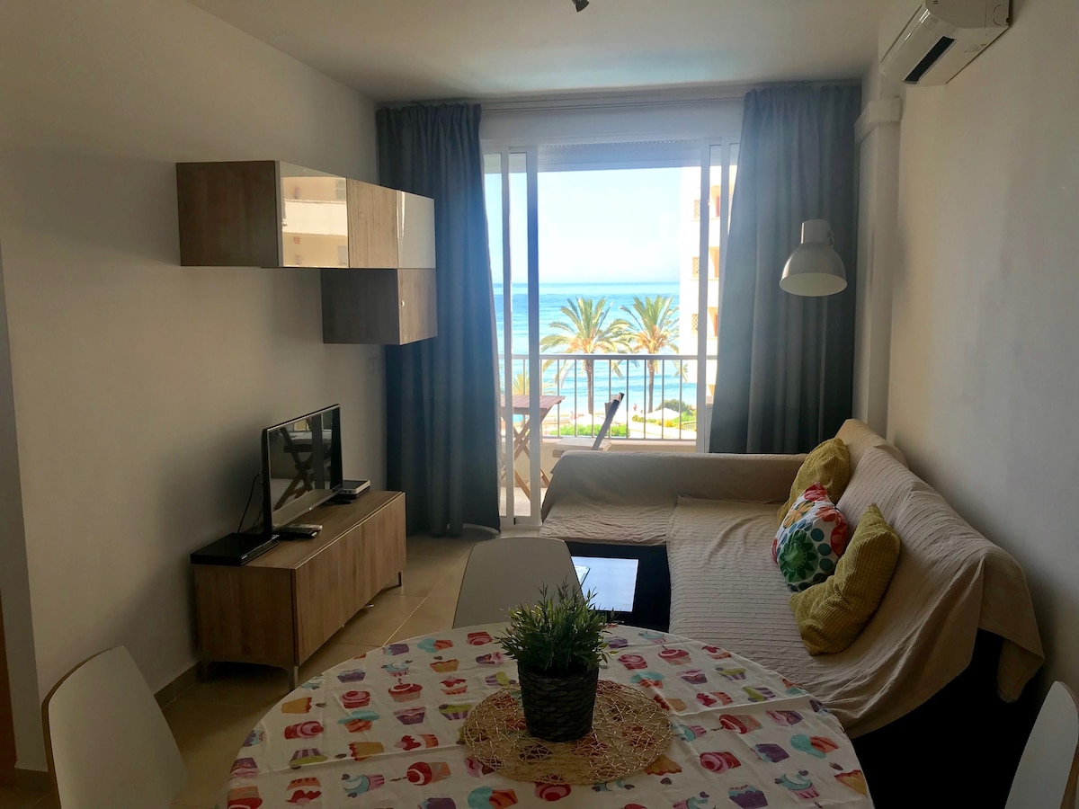 This is a just refurbished 2 bedrooms luxury apartment for 3 or 4 located on the 2nd floor in Edificio Neptuno.South facing with terrace looking out onto the beach and prom with sun all day.