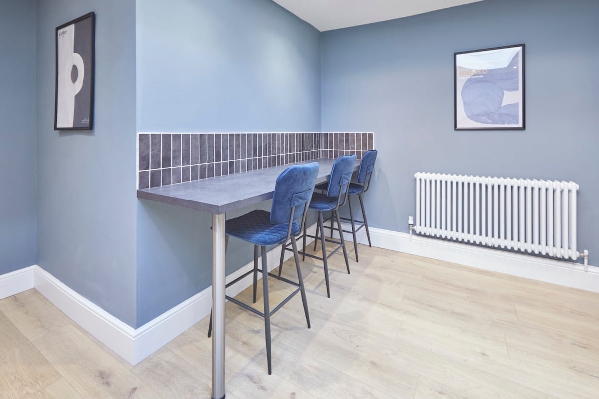 Fully equipped for self-catering stays, the large kitchen has everything you could need to prepare home cooked meals during your stay. Appliances include an oven, hob, toaster, kettle, microwave, fridge freezer, coffee maker and dishwasher. The kitchen also features a breakfast bar with three bar stools.