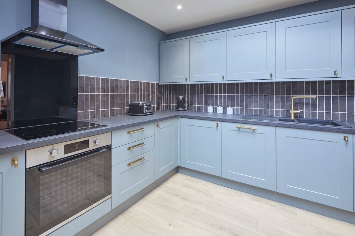 You’ll find stylish interiors throughout Castle View. Refurbished to a high standard, you can expect high quality furniture and beautiful styling. The property boasts an open plan living and dining room, fully equipped kitchen, five bedrooms, two bathrooms and a separate WC.Modern and spacious, the open plan living and dining room is perfect for socialising with your loved ones. The living area includes a blue L-shaped chaise sofa, a second grey sofa and a large flat screen TV. The ideal spot to retreat to after a fun-filled day exploring Scarborough, the living area is a comfortable space to unwind.