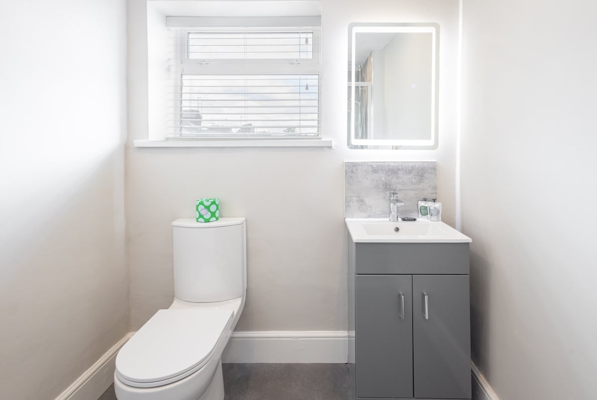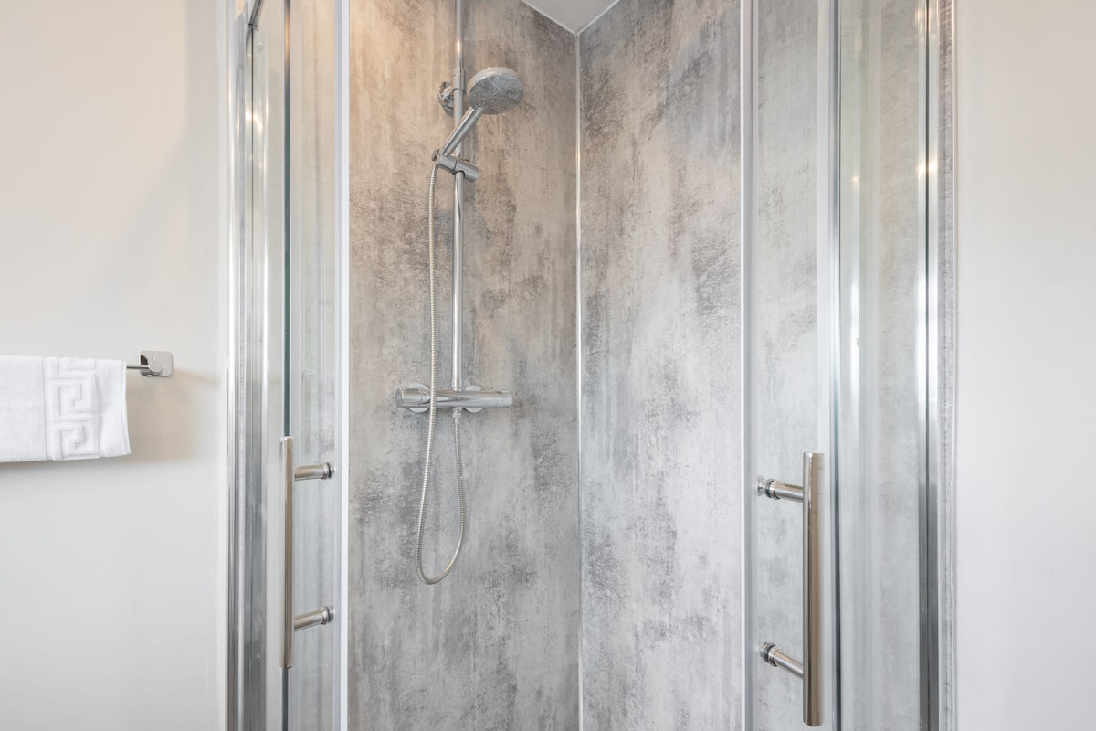 The bathroom at Clifton Studio 2 includes a walk-in shower, WC and basin.