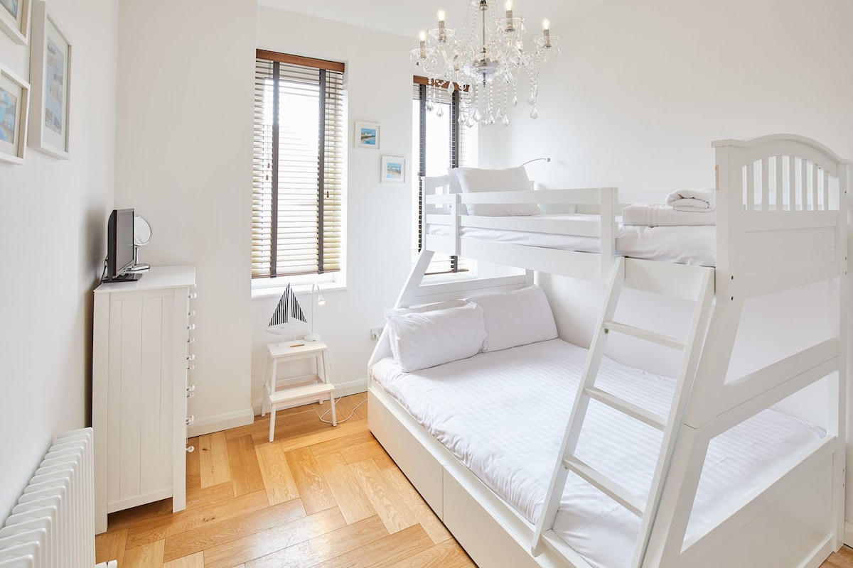 Head to the second bedroom and you’ll find a bunk bed with a double on the bottom, and a single on the top bunk. This space could provide the perfect base for your children and teenagers who need a bit of their own private space throughout your stay.