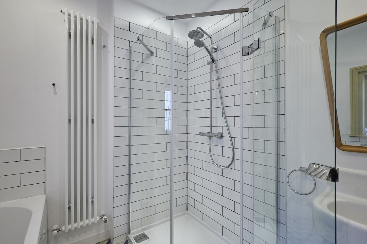 Spacious and modern, the bathroom includes a bathtub, separate shower, WC and basin.
