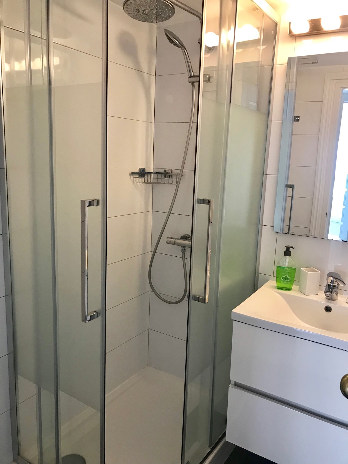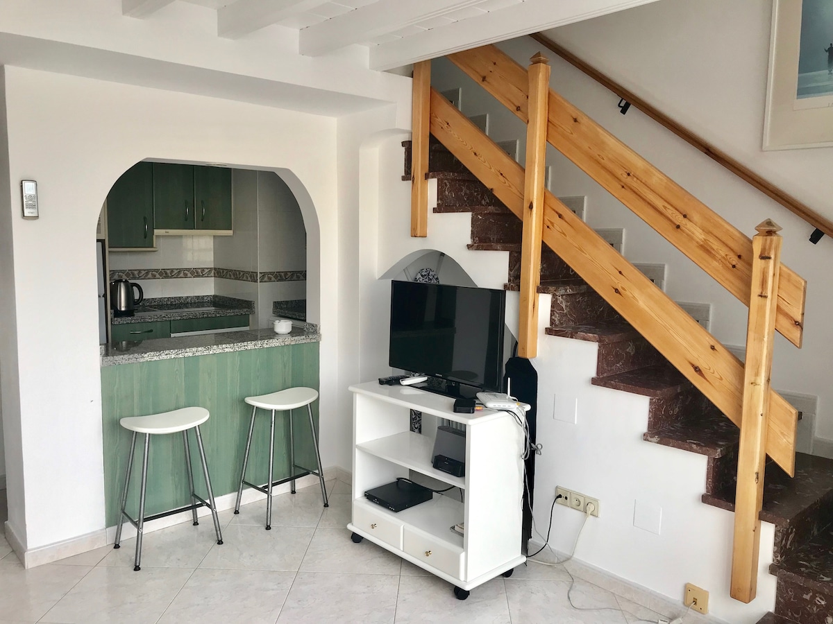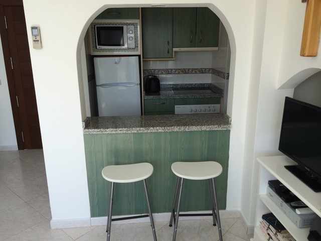 Modern, light and airy, recently refurbished in light colors that will make your stay calm and relaxing, open plan well stocked kitchen with all appliances, should you fancy to cook and bathroom with bath.