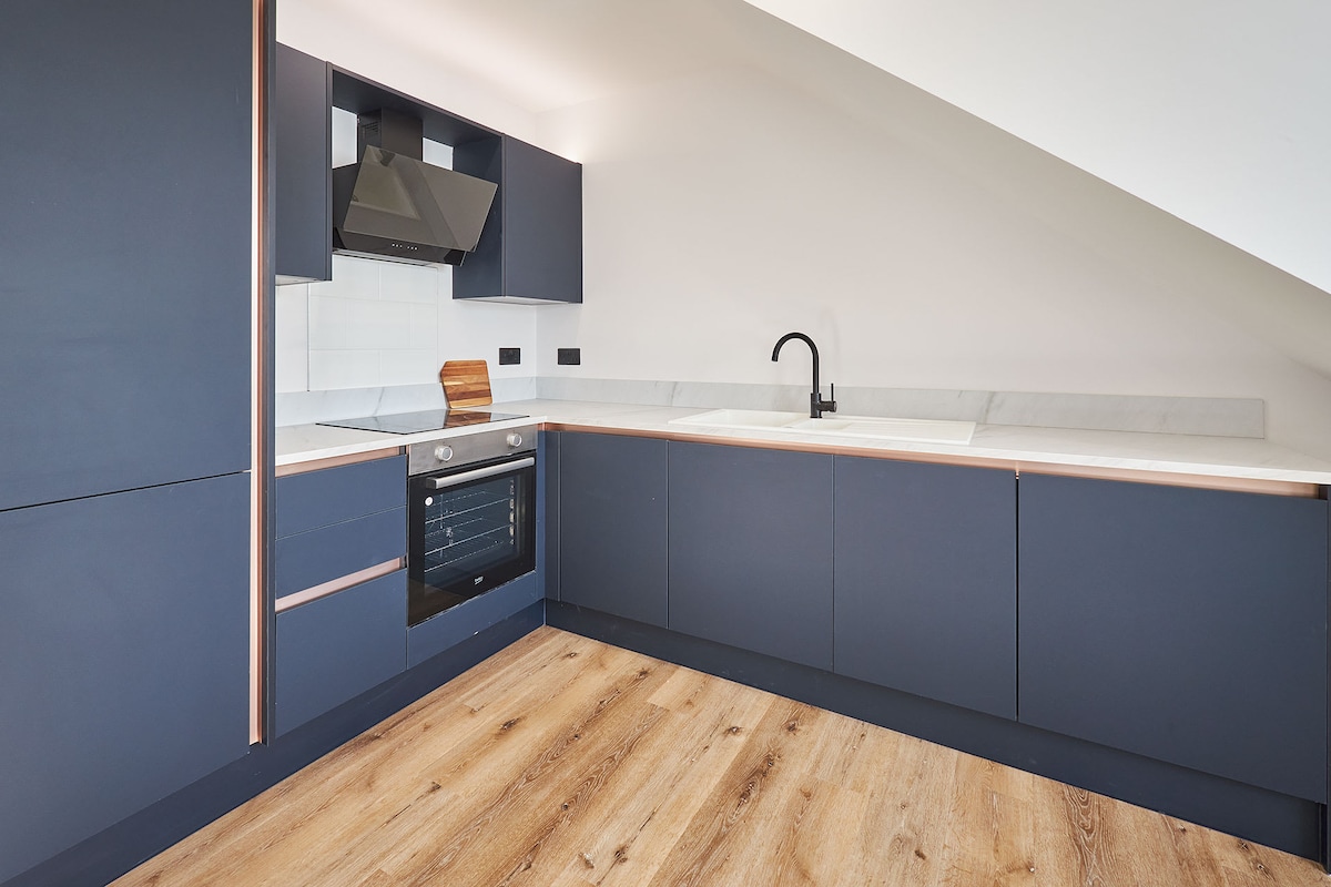 Apartment 4, Fourth Avenue has a bright and welcoming open plan kitchen, living and dining area. With high ceilings and a neutral colour scheme, there is a modern, 21st century feel to this polished space. Ideal for two, the living area includes a comfortable sofa and a flat screen Smart TV.The stunning kitchen has everything you could need to prepare meals including an oven, hob, toaster, kettle, microwave and refrigerator. Enjoy your meals with your fellow guests at the dining area which includes a wooden table and surrounding bench.