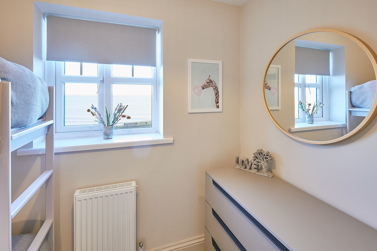 The second bedroom is a double, and the third has a bunk bed with two singles. Guests are guaranteed a great night’s sleep at ‘Salty’ Seaview thanks to the plush bedding and premium bed linens used to make up the beds at the property.