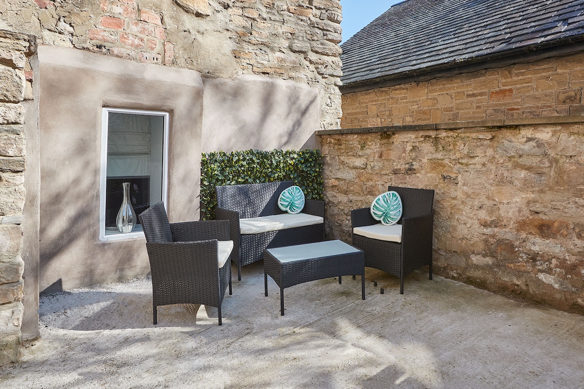Outside you’ll find an open patio space with outdoor seating. Perfect for enjoying a morning coffee or an evening tipple, this area is an added bonus.